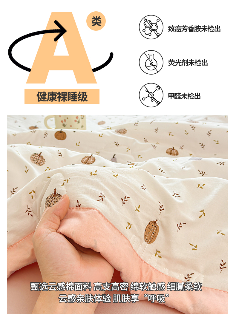 商品名称:西域种棉人·千百笠 2026新款A类印花手包边凌香新疆棉花夏被 凌香 心怡南瓜