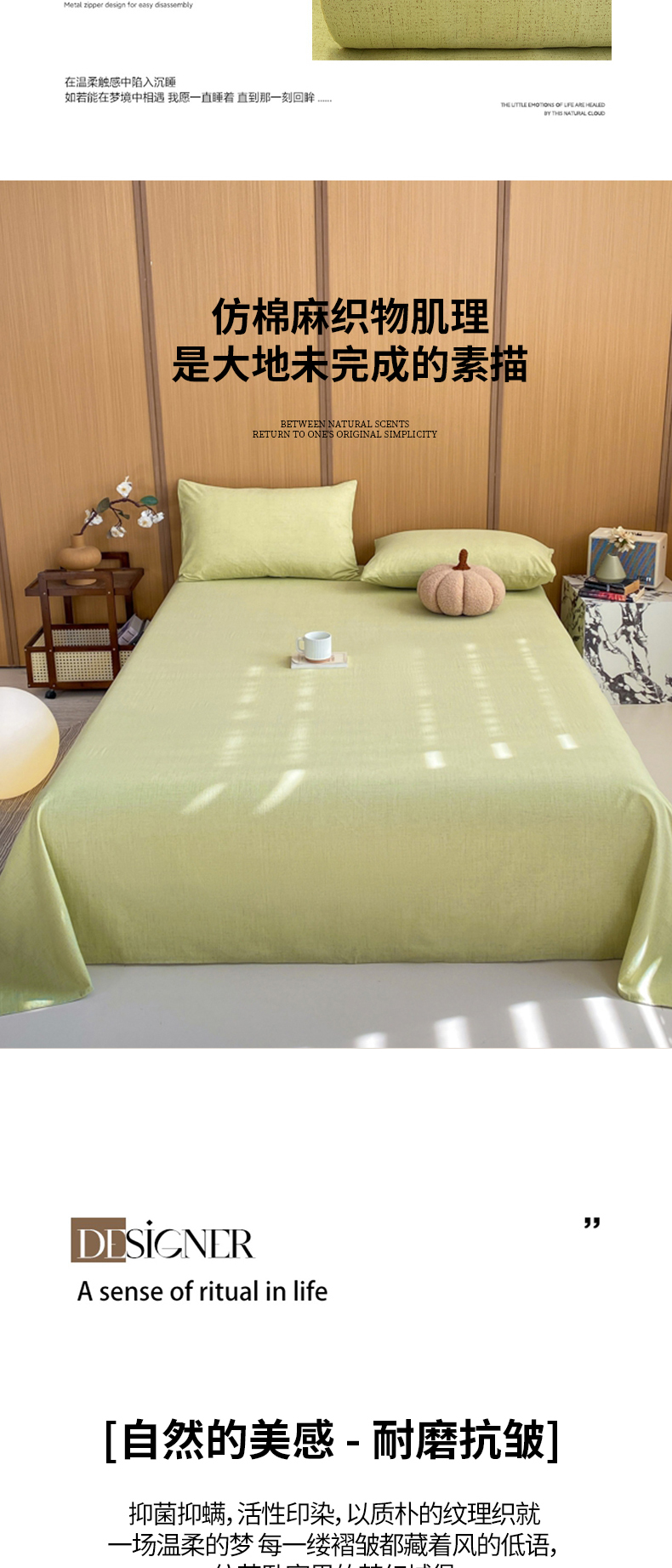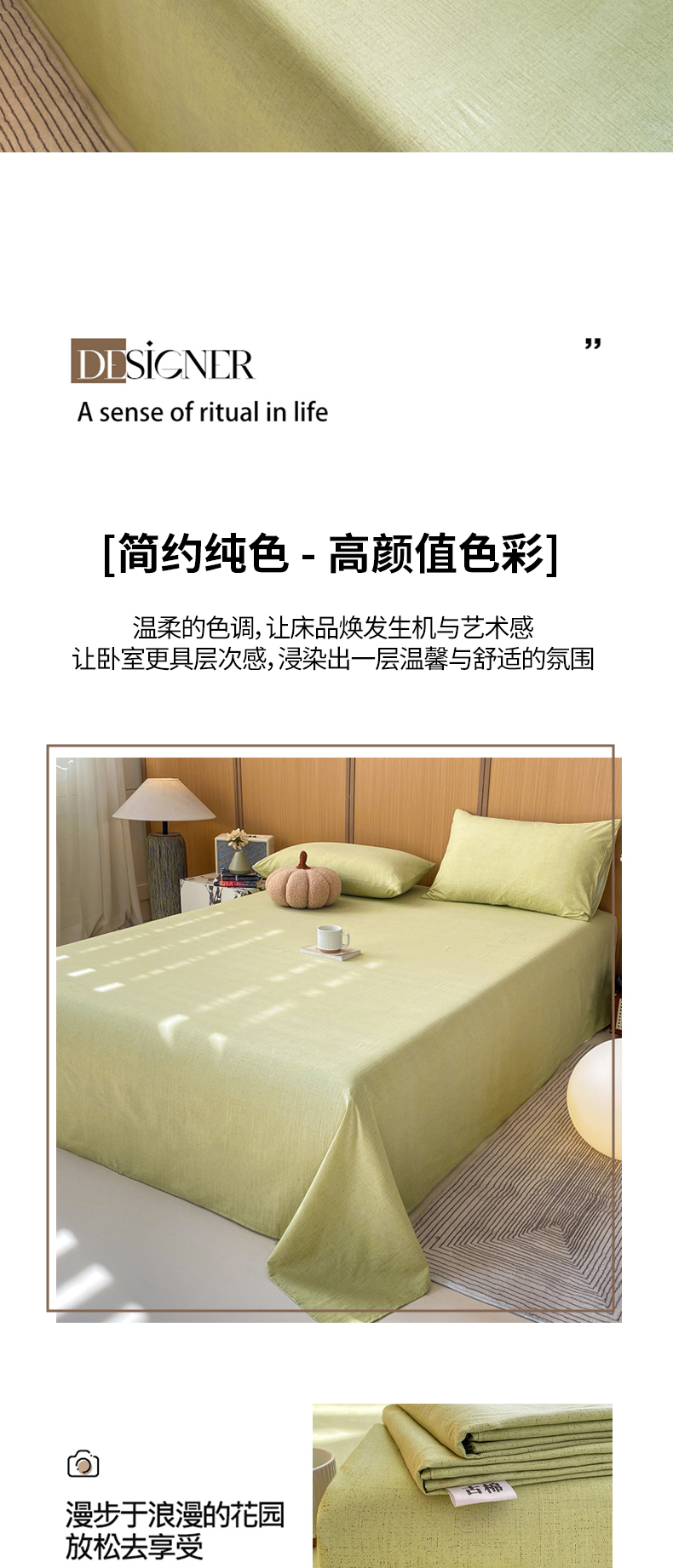 商品名称:麒东家纺 2026年新款古棉麻单床单 绿色