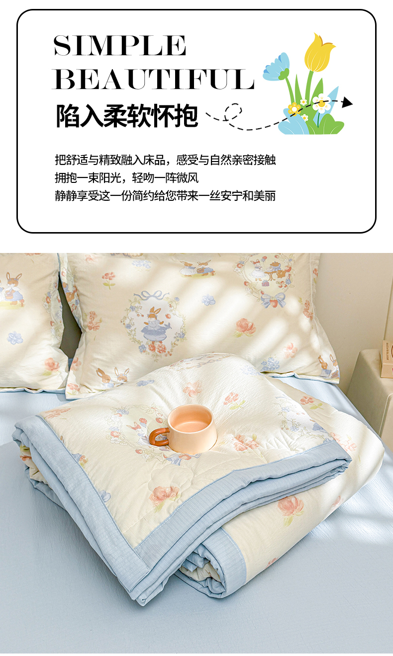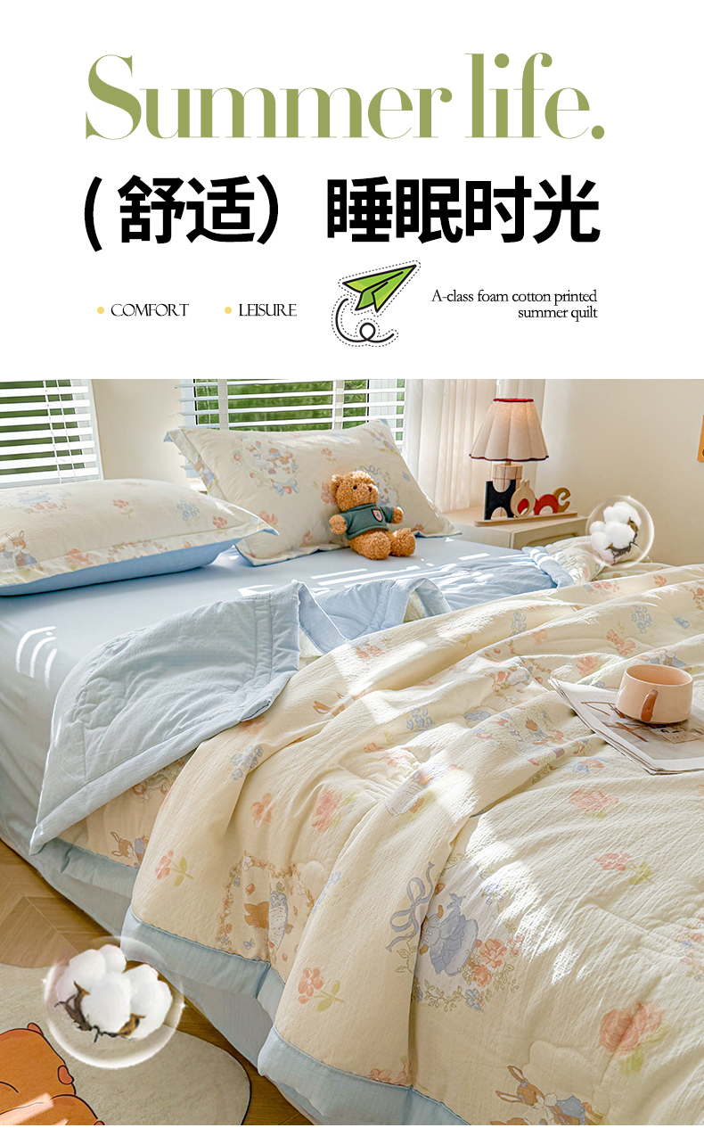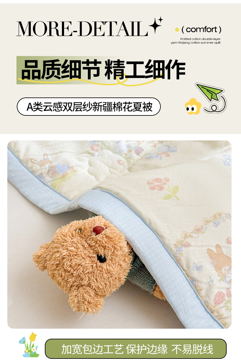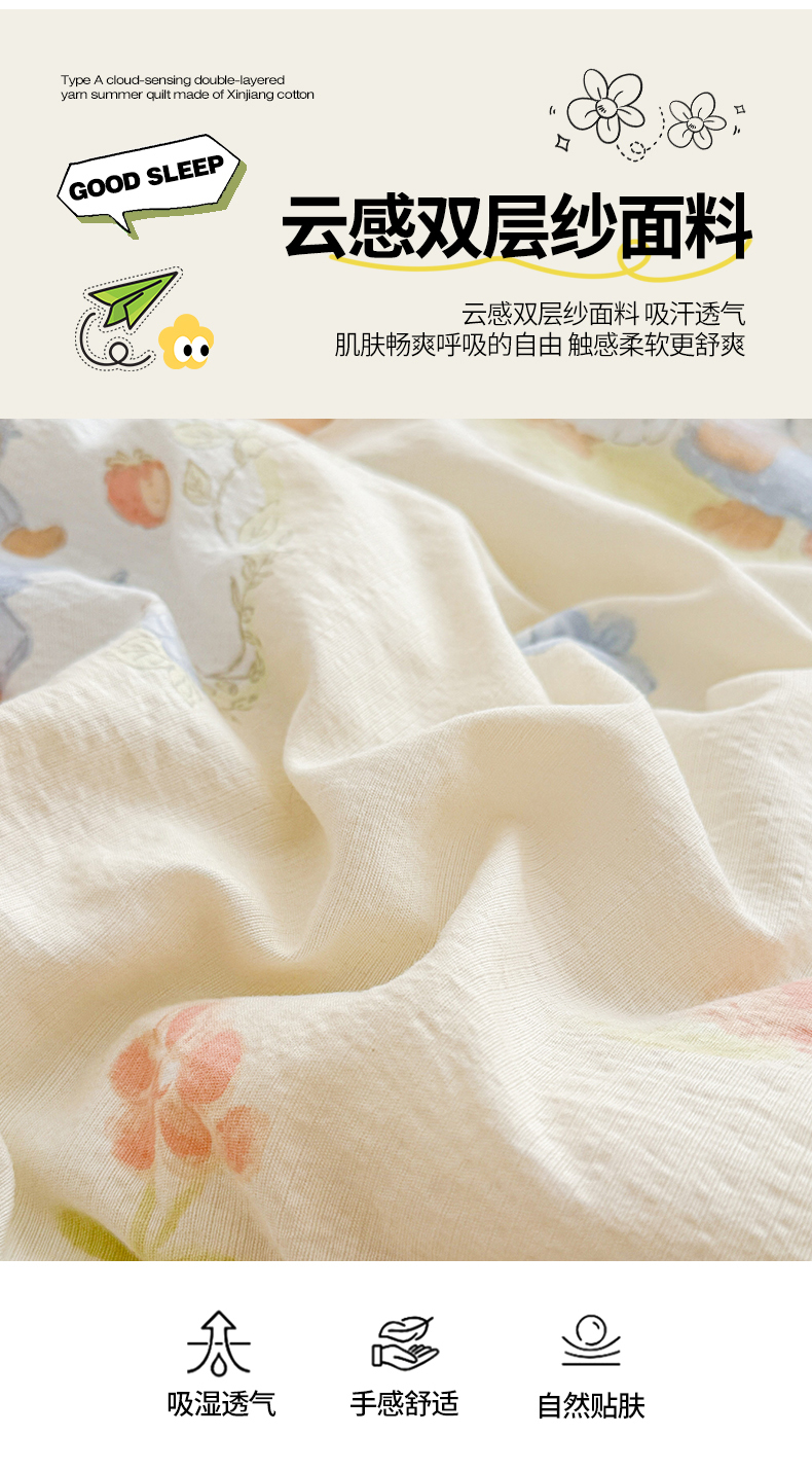 商品名称:西域种棉人·千百笠 2026新款A类新疆棉花夏凉被加宽包边水洗棉卡通印花吸湿透气棉花夏被空调被 云感派对