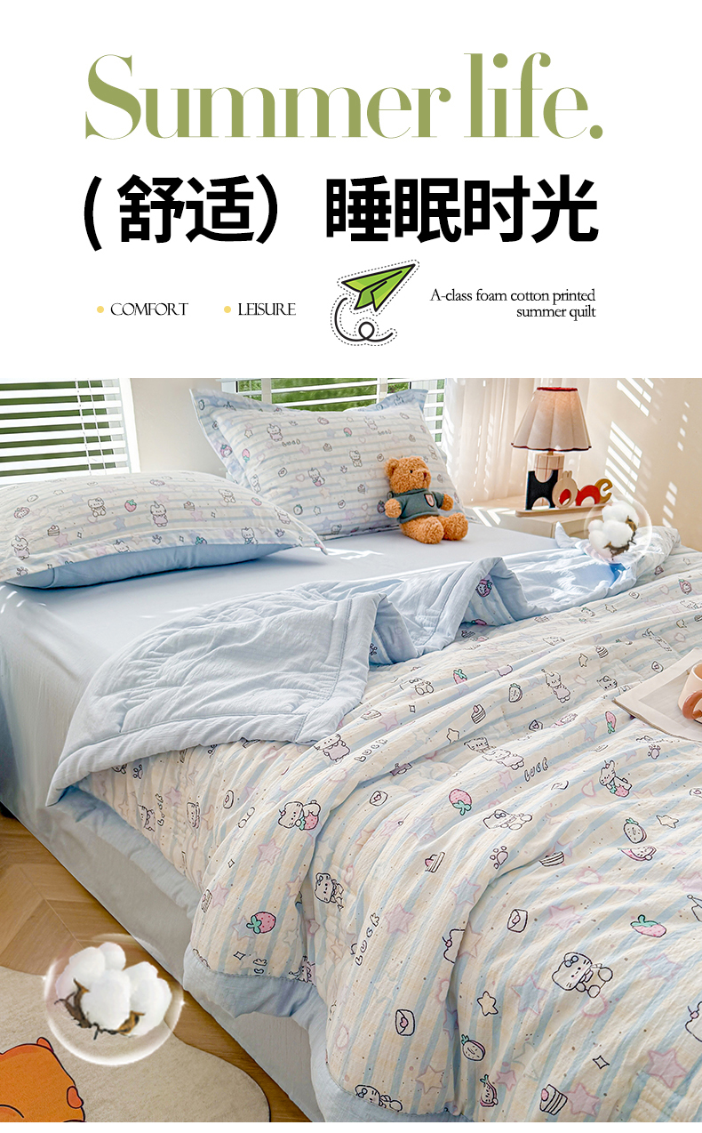 商品名称:西域种棉人·千百笠 2026新款A类新疆棉花夏凉被加宽包边水洗棉卡通印花吸湿透气棉花夏被空调被 云感幸运喵