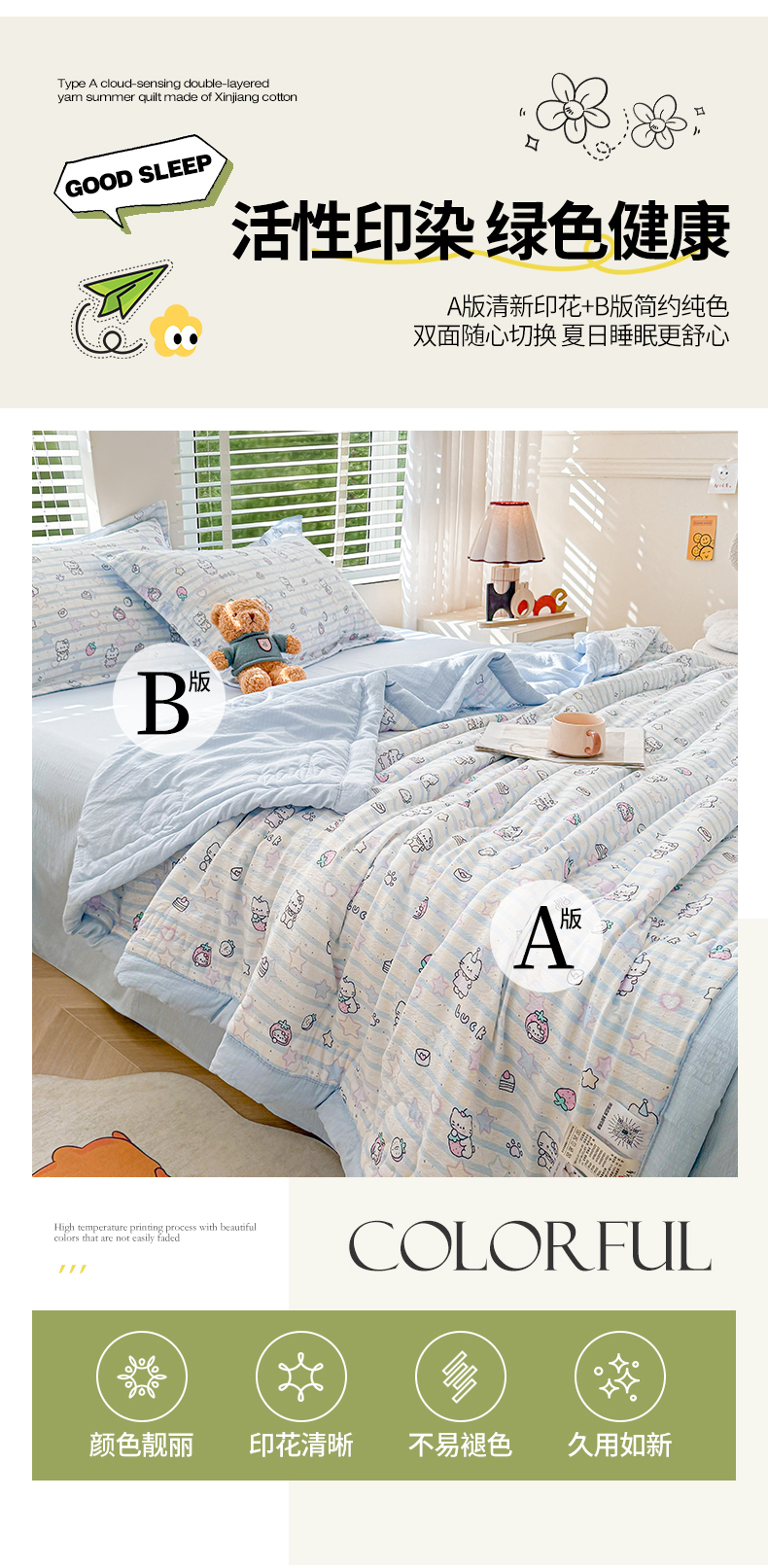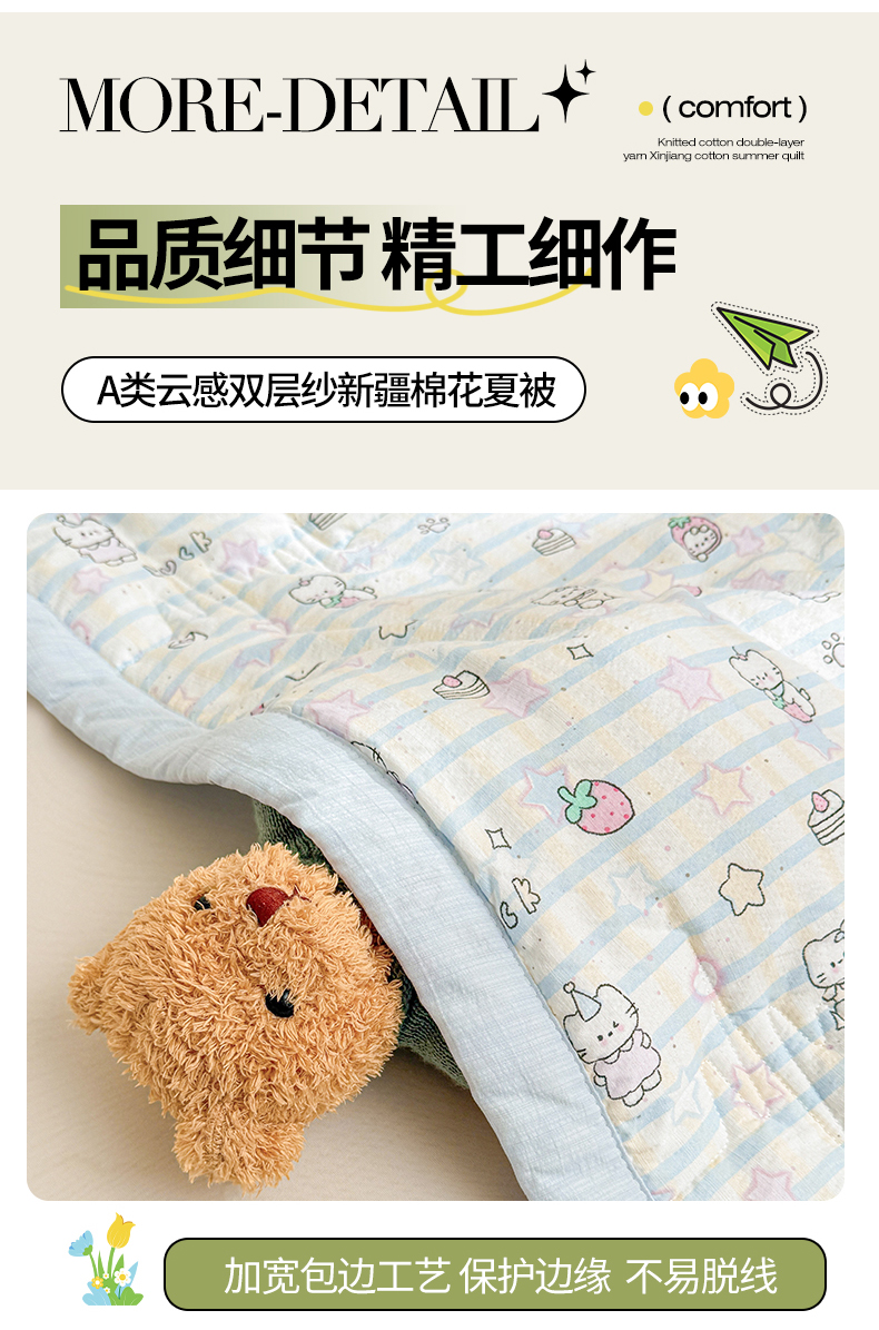 被子 > 夏被 > 西域种棉人·千百笠 2026新款A类新疆棉花夏凉被加宽包边水洗棉卡通印花吸湿透气棉花夏被空调被 云感幸运喵