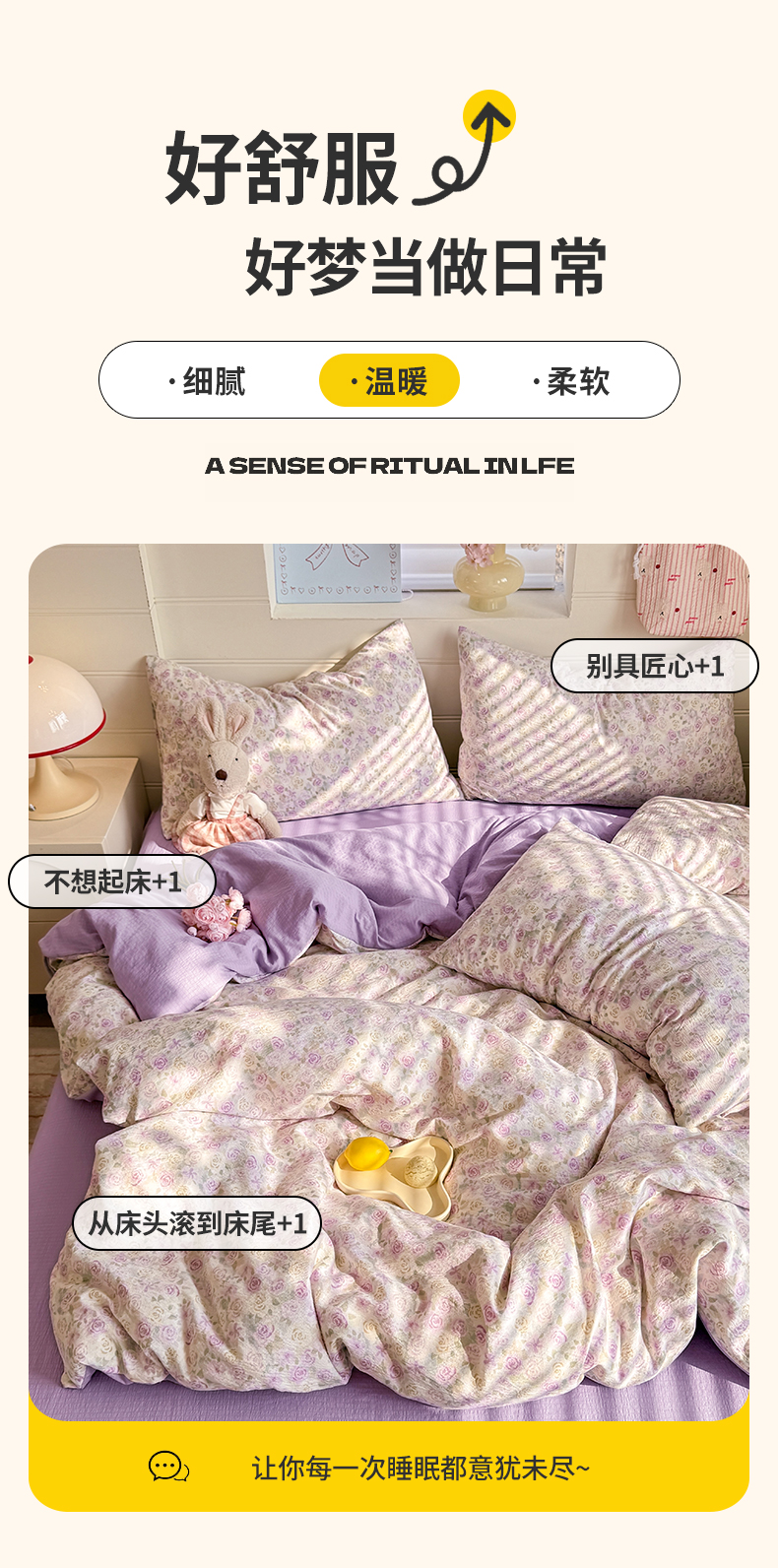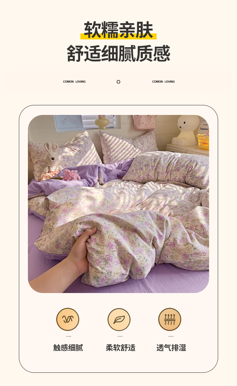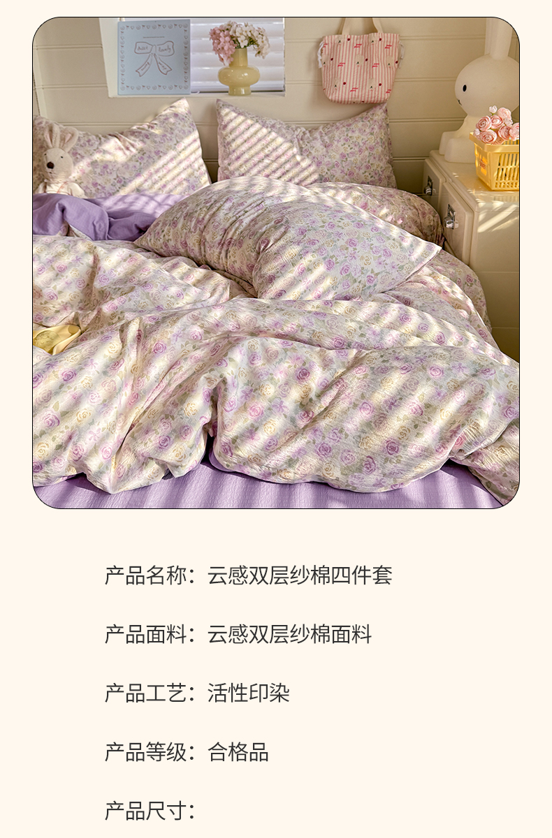 当前位置: 91家纺网 > 商品网购 > 床品套件 > 四件套 > 其它四件套 > 九诺家纺 2026新款丝柔棉加厚小清新印花四件套-甜心 甜心-蔷薇语