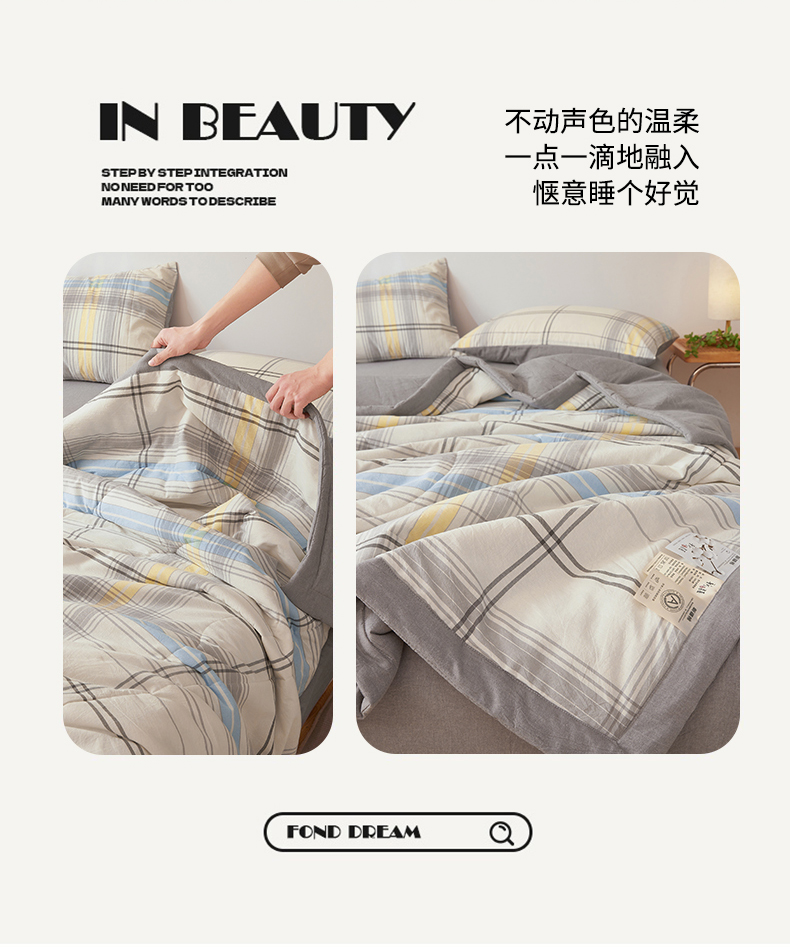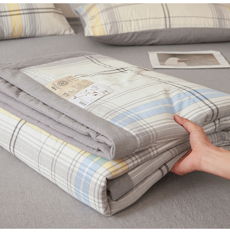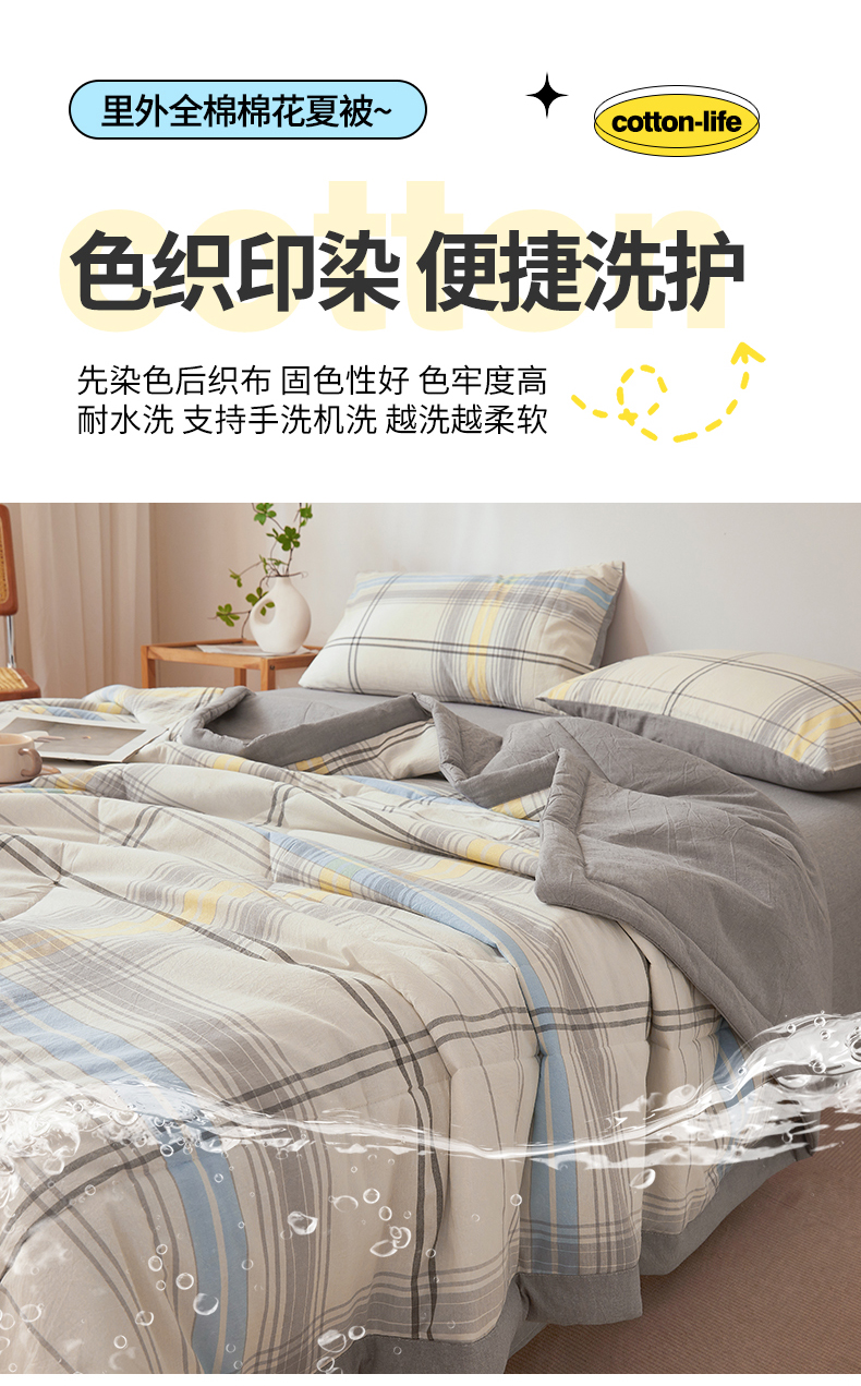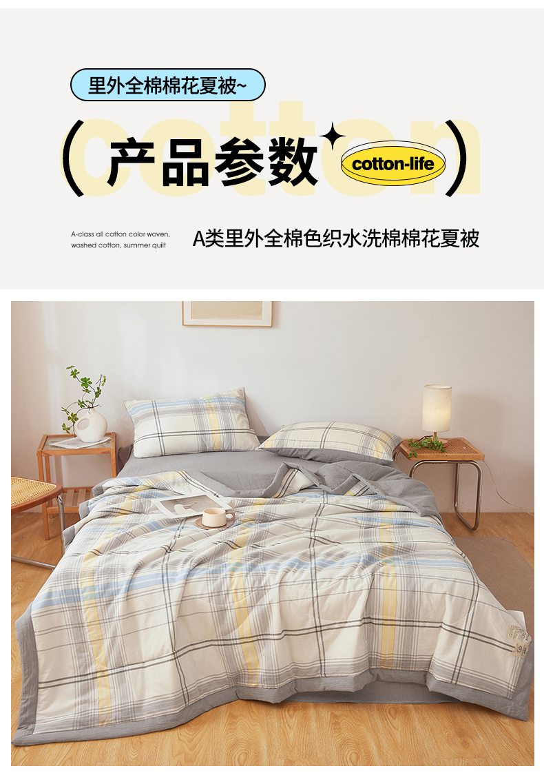 商品名称:西域种棉人·千百笠 2026新款A类里外全棉夏凉被100%新疆棉纯棉全棉填充无印格子款空调被夏被 里外全棉-简灰格
