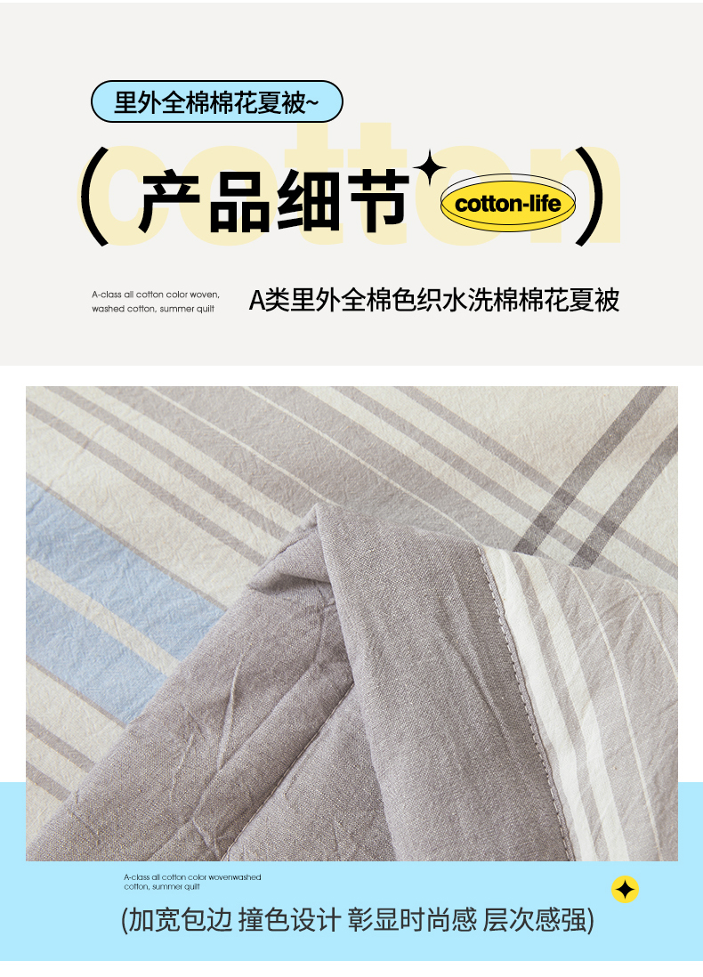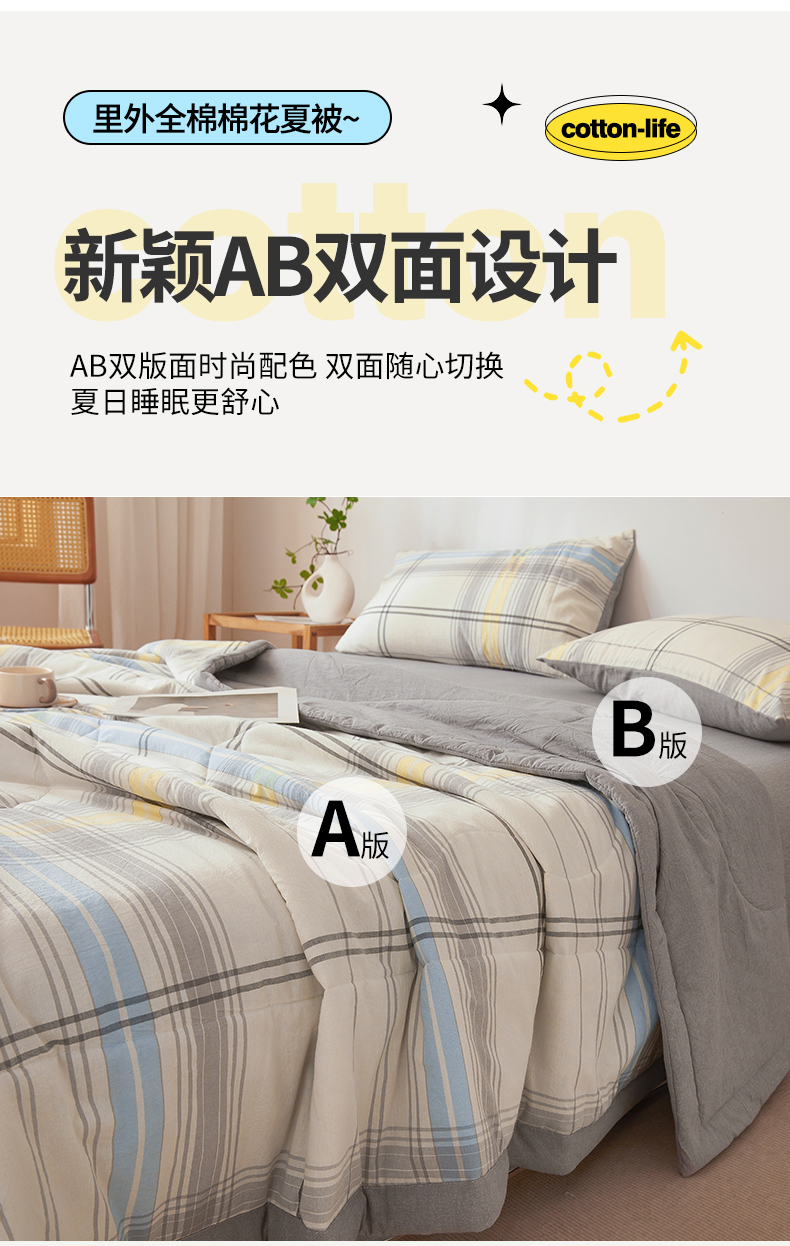 西域种棉人·千百笠 2026新款A类里外全棉夏凉被100%新疆棉纯棉全棉填充无印格子款空调被夏被 里外全棉-简灰格