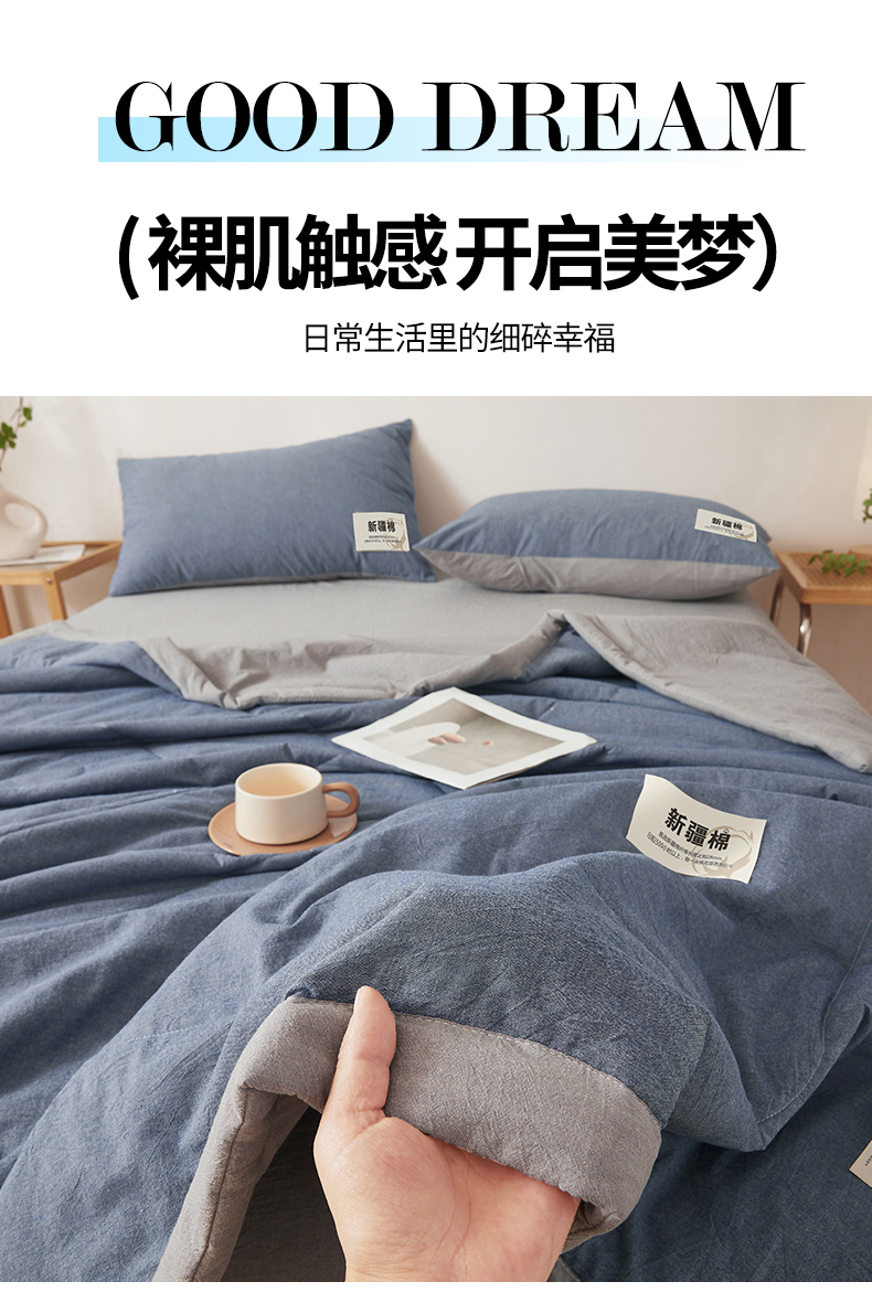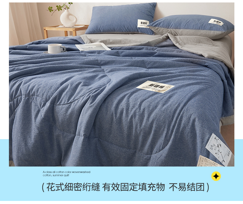 商品名称:西域种棉人·千百笠 2026新款A类里外全棉夏凉被100%新疆棉纯棉全棉填充无印格子款空调被夏被 里外全棉-双拼蓝