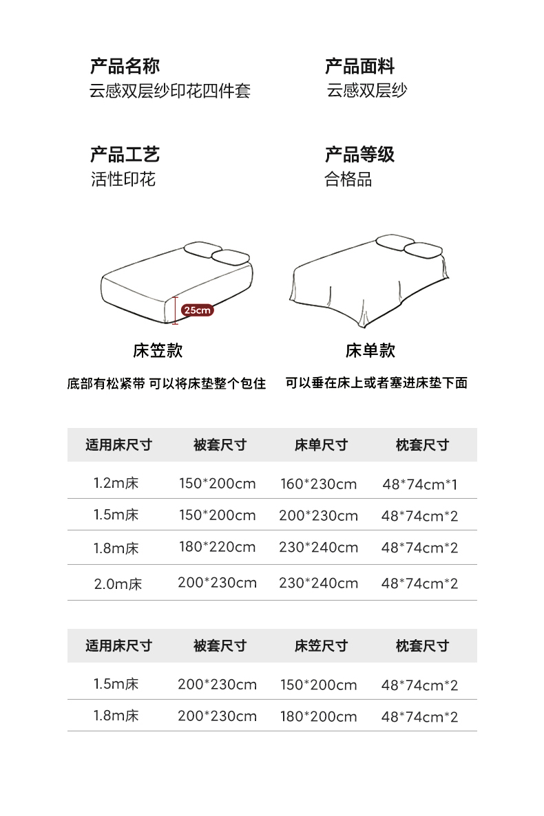 商品名称:(总)优选 2026新款小清新直播热卖款云感双层纱木棉四件套系列(小红书热款推荐)