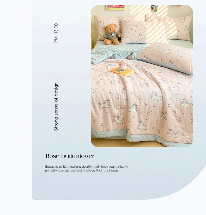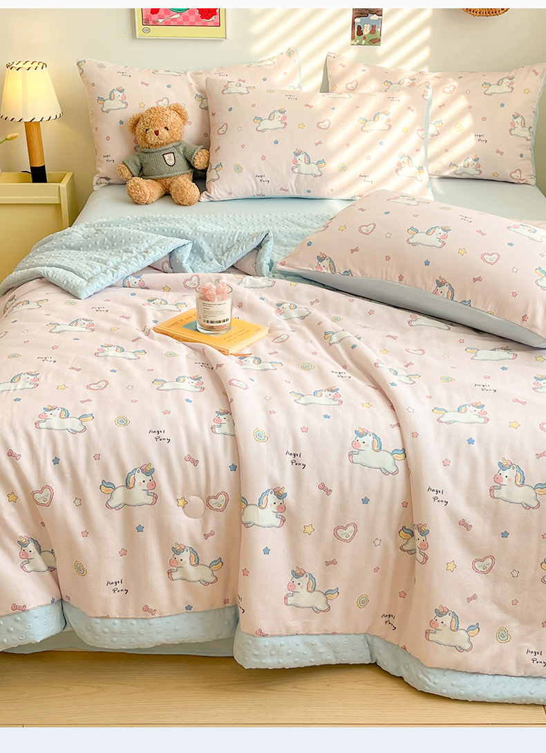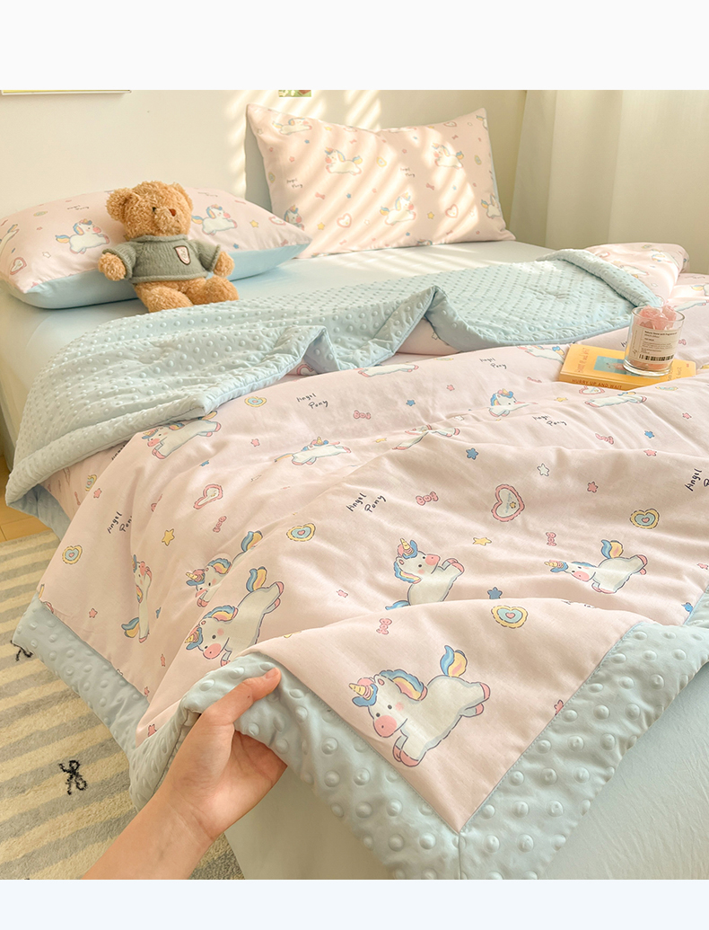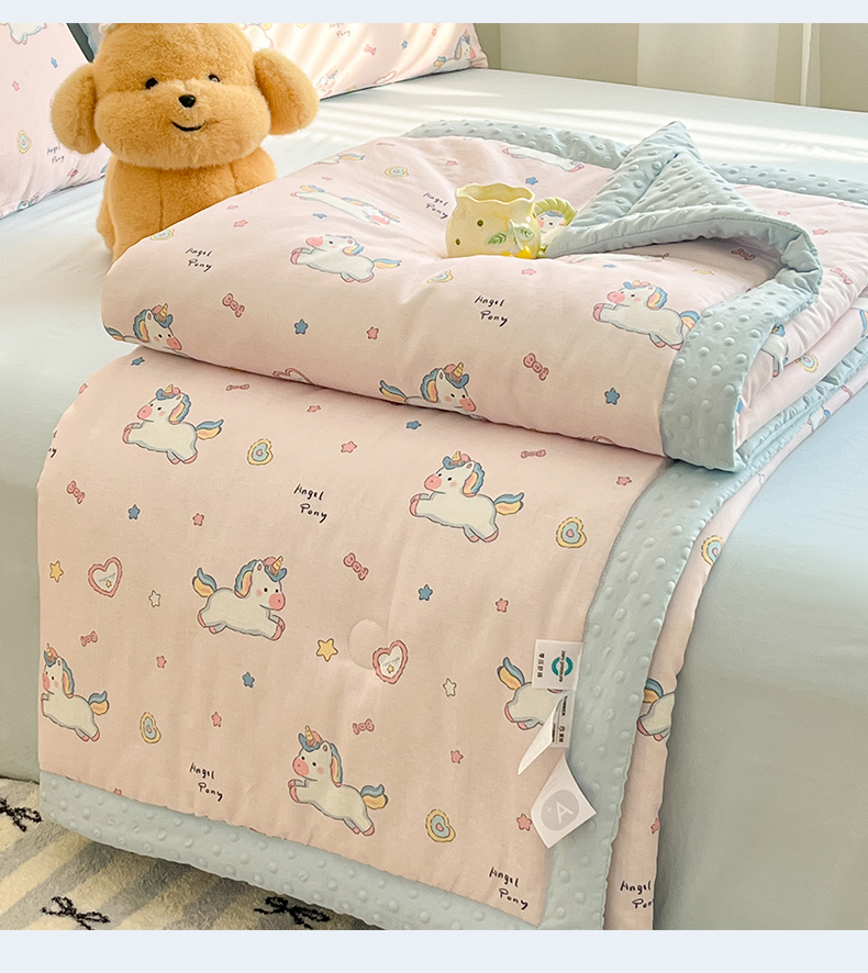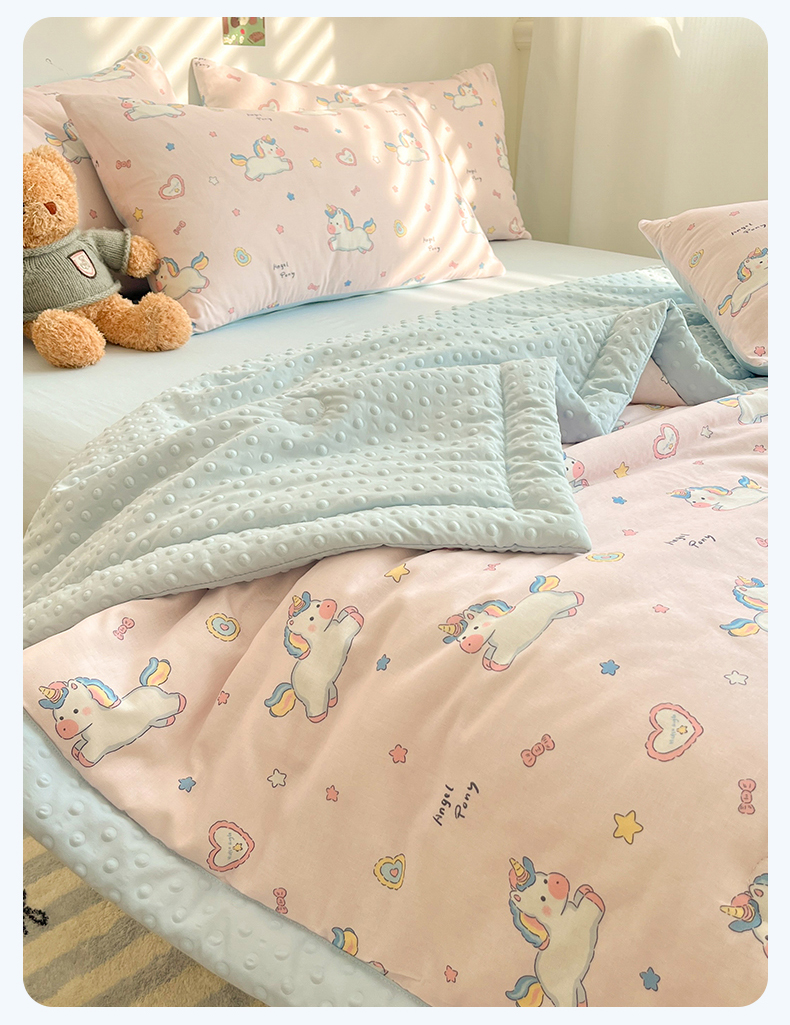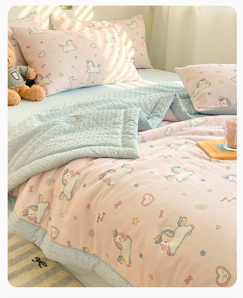 盛秋家纺 2026新款A类水洗棉豆豆夏被系列 独角兽粉+天空蓝