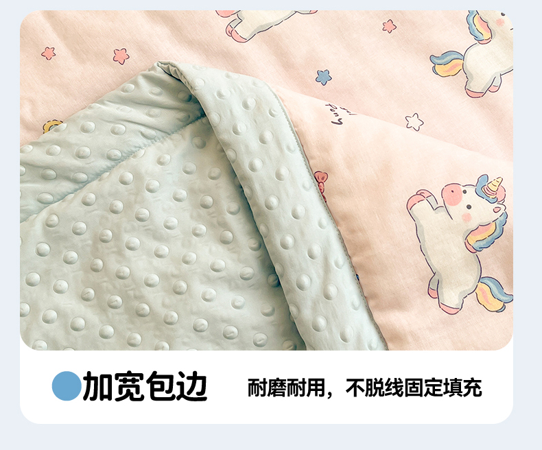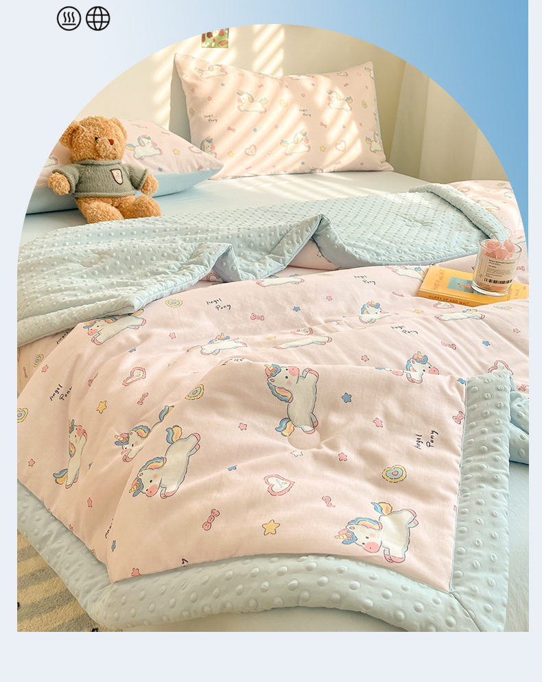 当前位置: 91家纺网 > 商品网购 > 被子 > 夏被 > 盛秋家纺 2026新款A类水洗棉豆豆夏被系列 独角兽粉+天空蓝