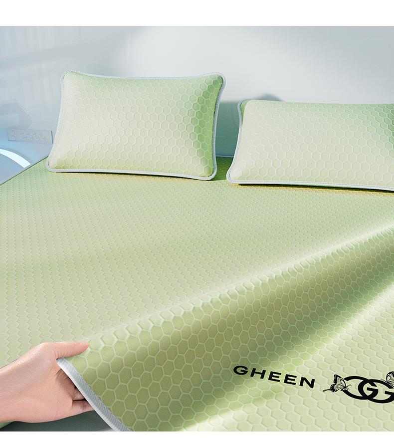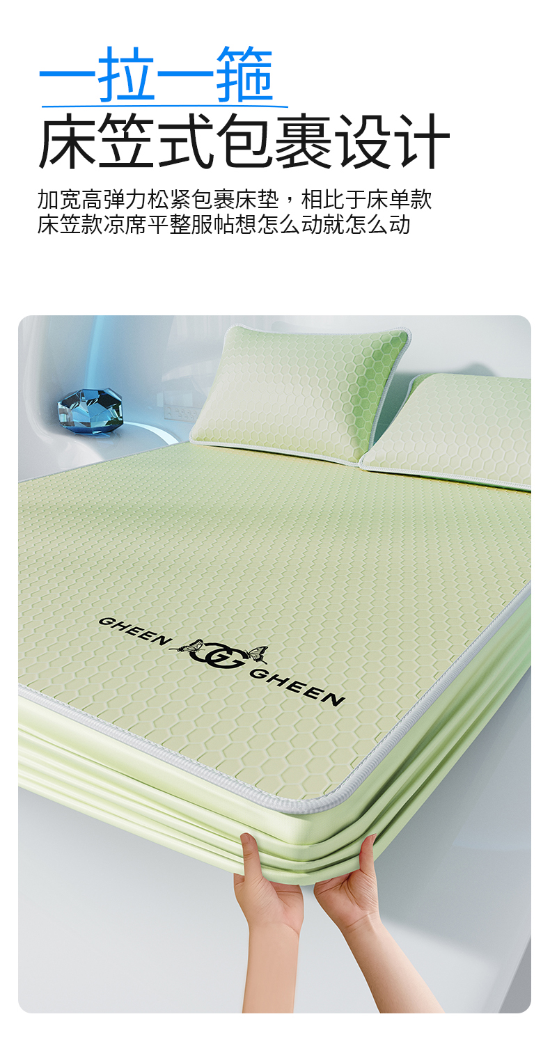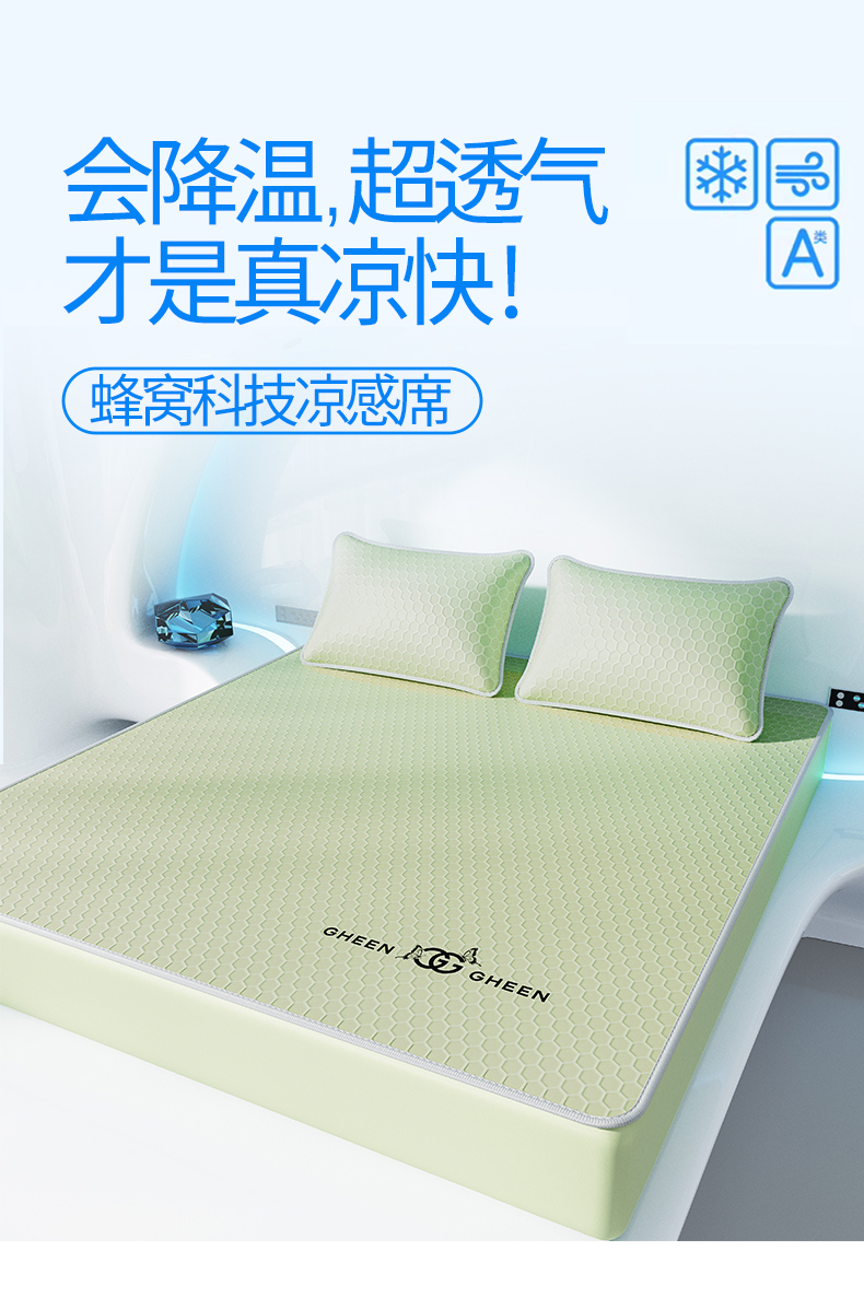 • 91家纺网 家纺一手货源 找家纺 好福居 2026新款蜂窝科技凉感席-床笠款 蜂窝款-绿色床笠款