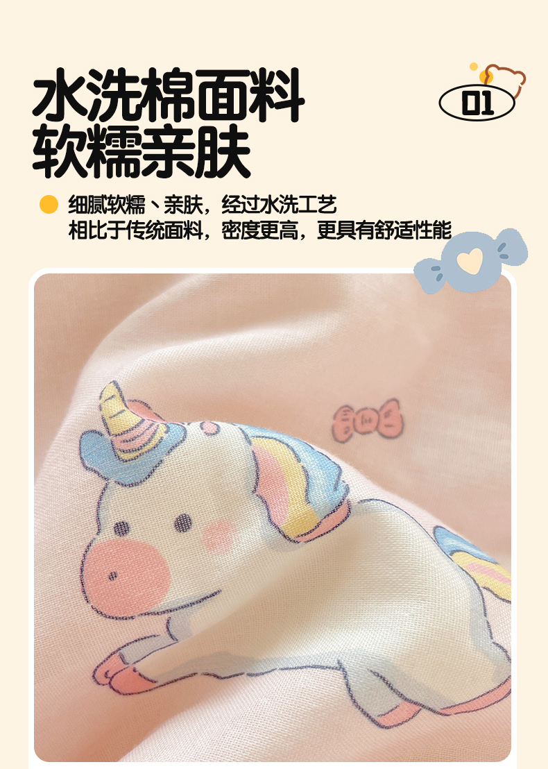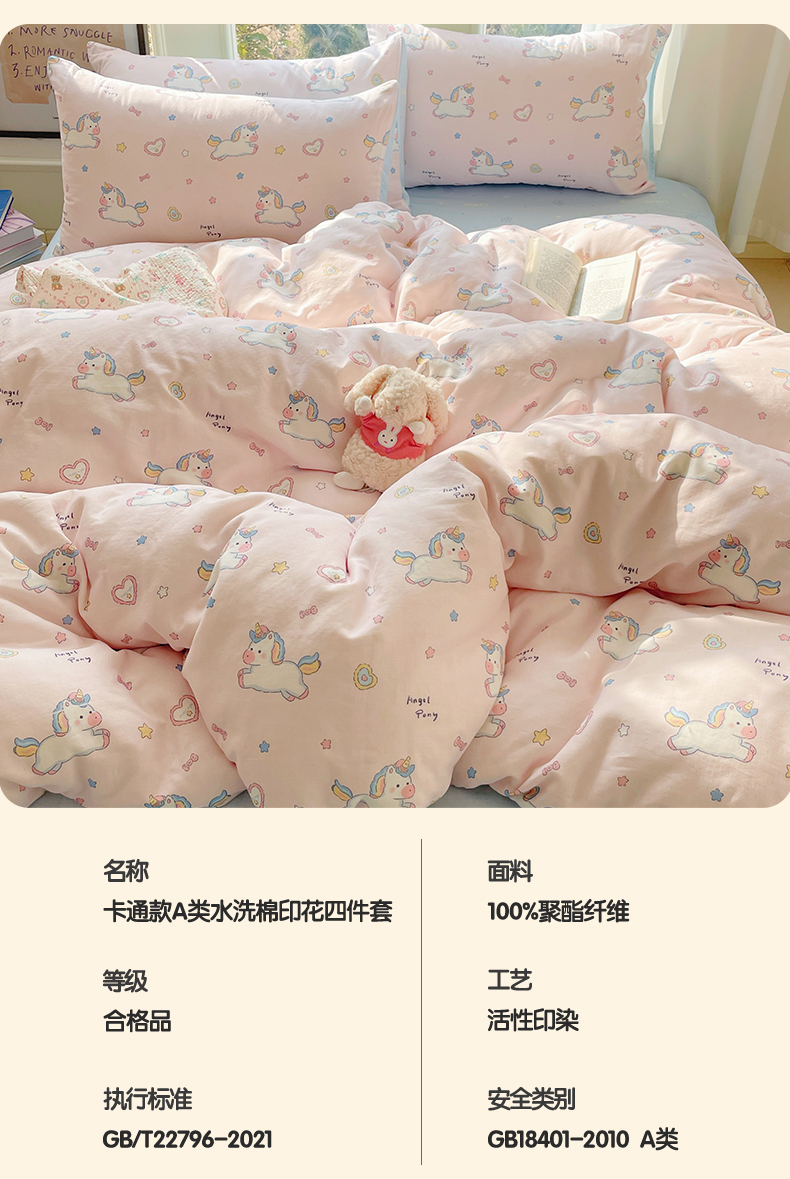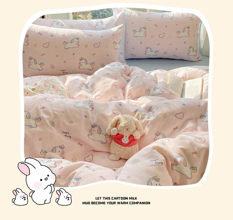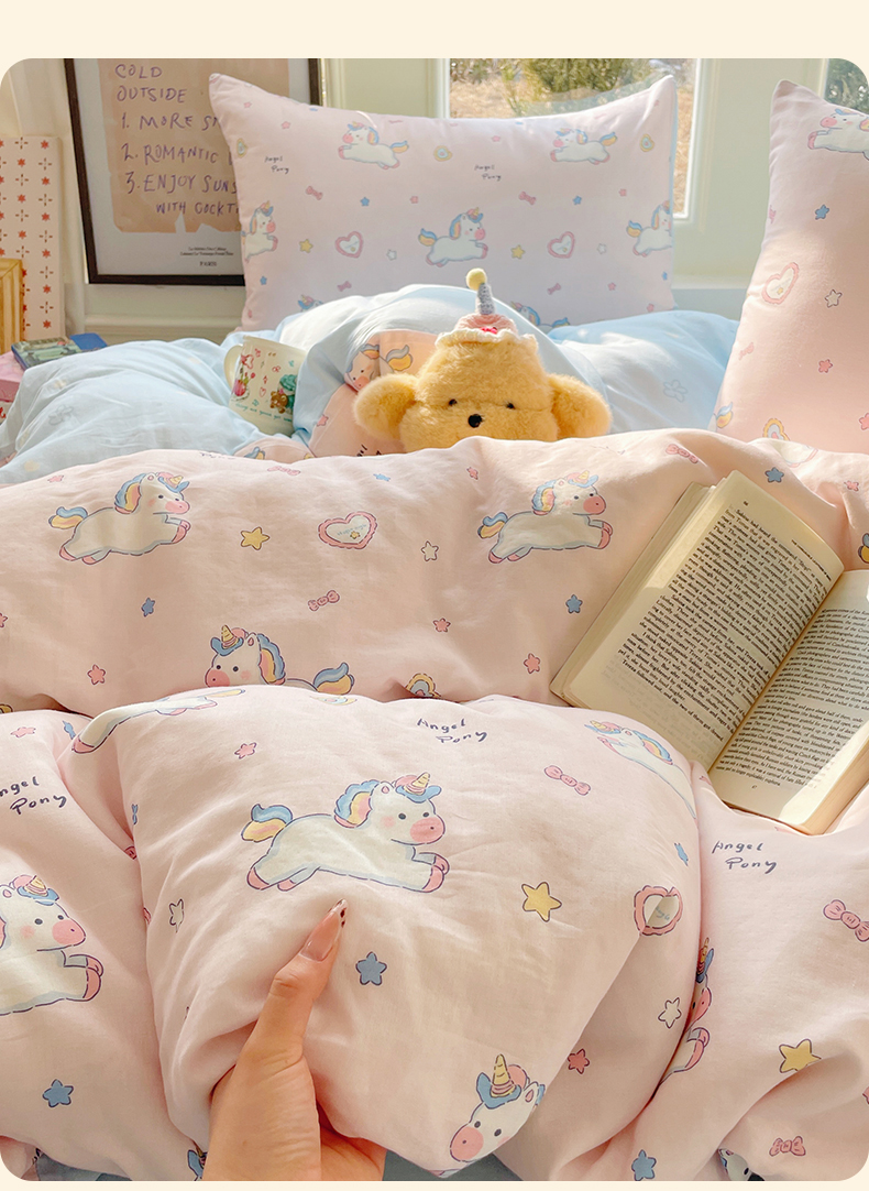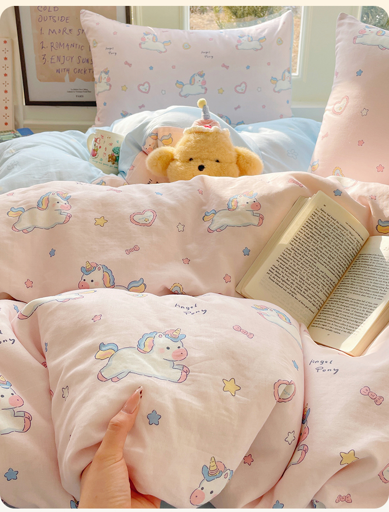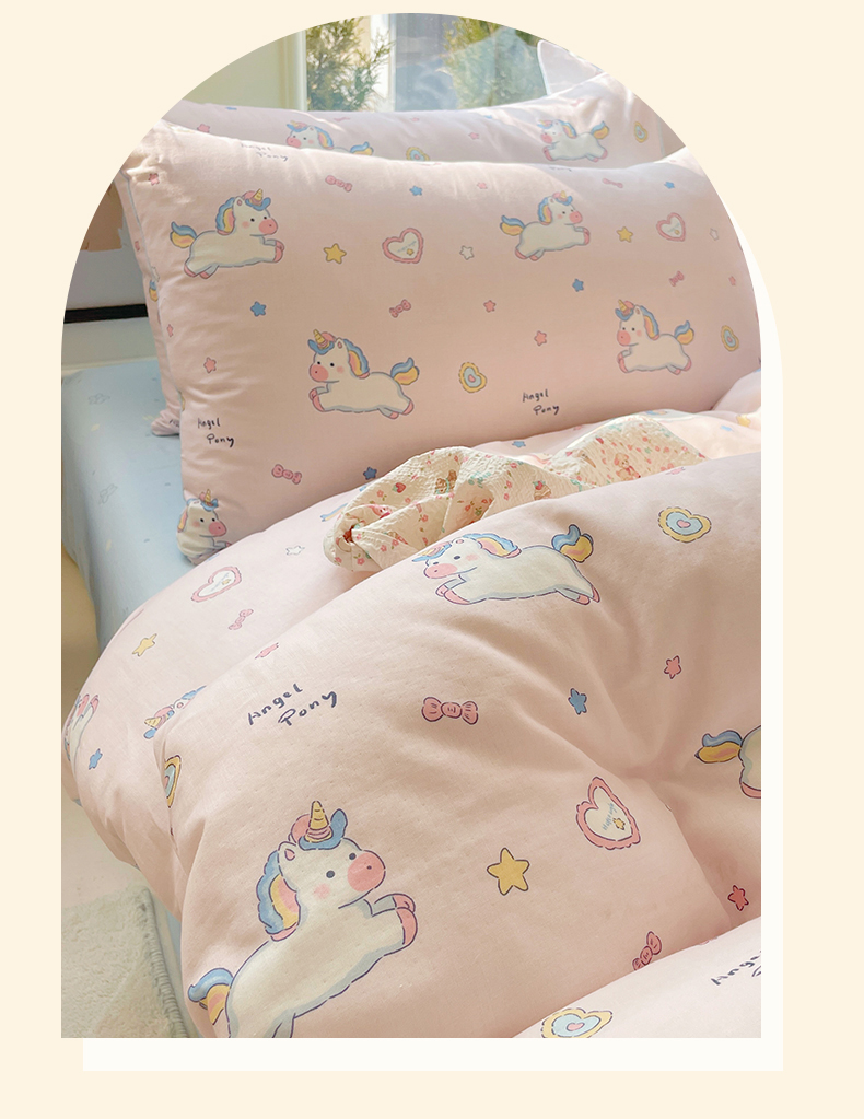 当前位置: 91家纺网 > 商品网购 > 床品套件 > 四件套 > 水洗棉四件套 > 盛秋家纺 2026新款水洗棉印花四件套-卡通系列 天使小马粉+花朵蓝