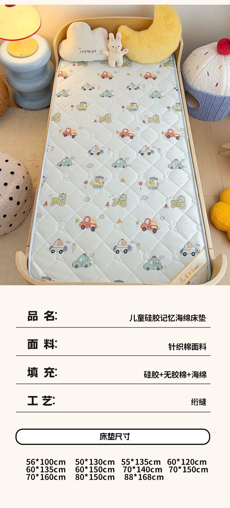 商品名称:(总)嗨生活 2026新款儿童硅胶记忆海绵床垫