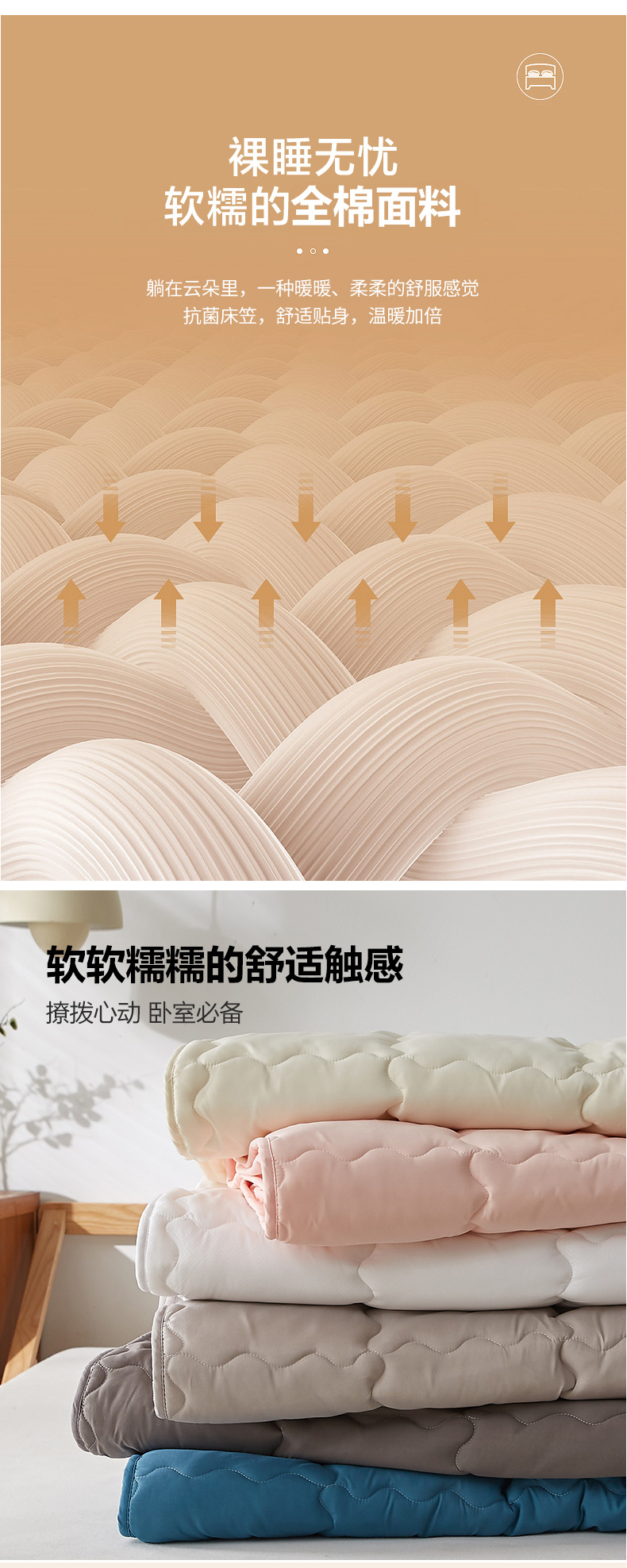 • 91家纺网 家纺一手货源 找家纺 伊赛家纺 2026新款抗菌防螨助眠全棉夹棉绗缝床笠-大格 大格蓝色