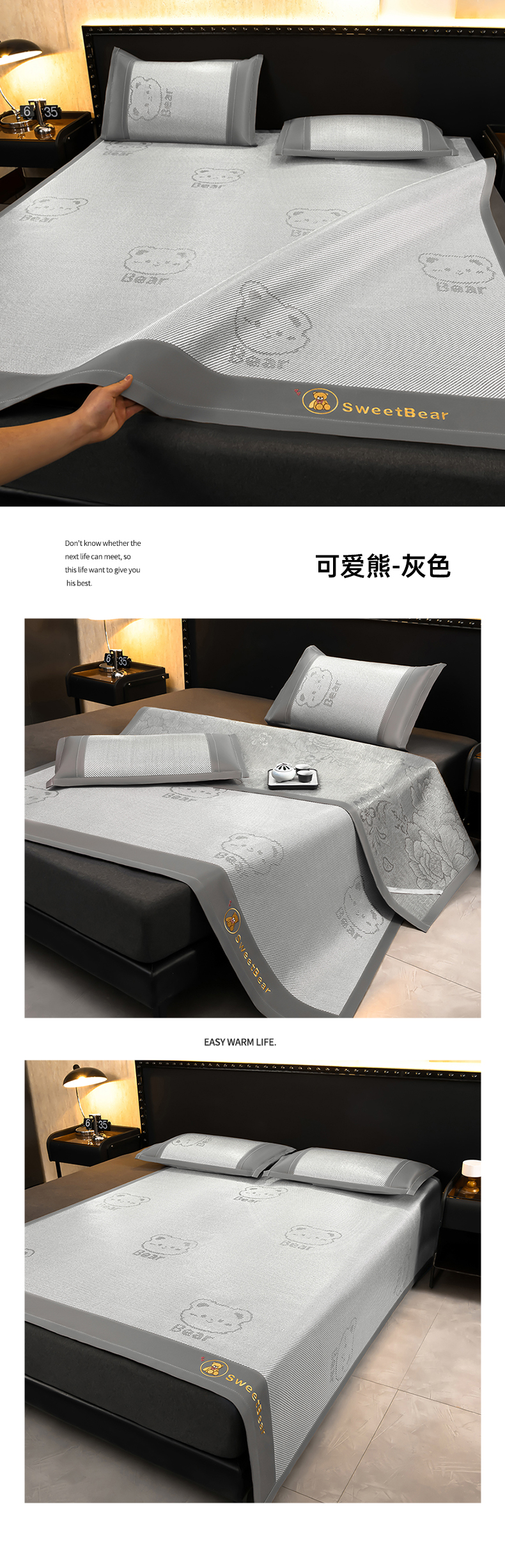 当前位置: 91家纺网 > 商品网购 > 床上用品 > 凉席 > 冰丝席 > 苏迪网销供货 2026新款冰藤席可爱熊刺绣款凉席藤席双面可用冰丝席 可爱熊-灰色