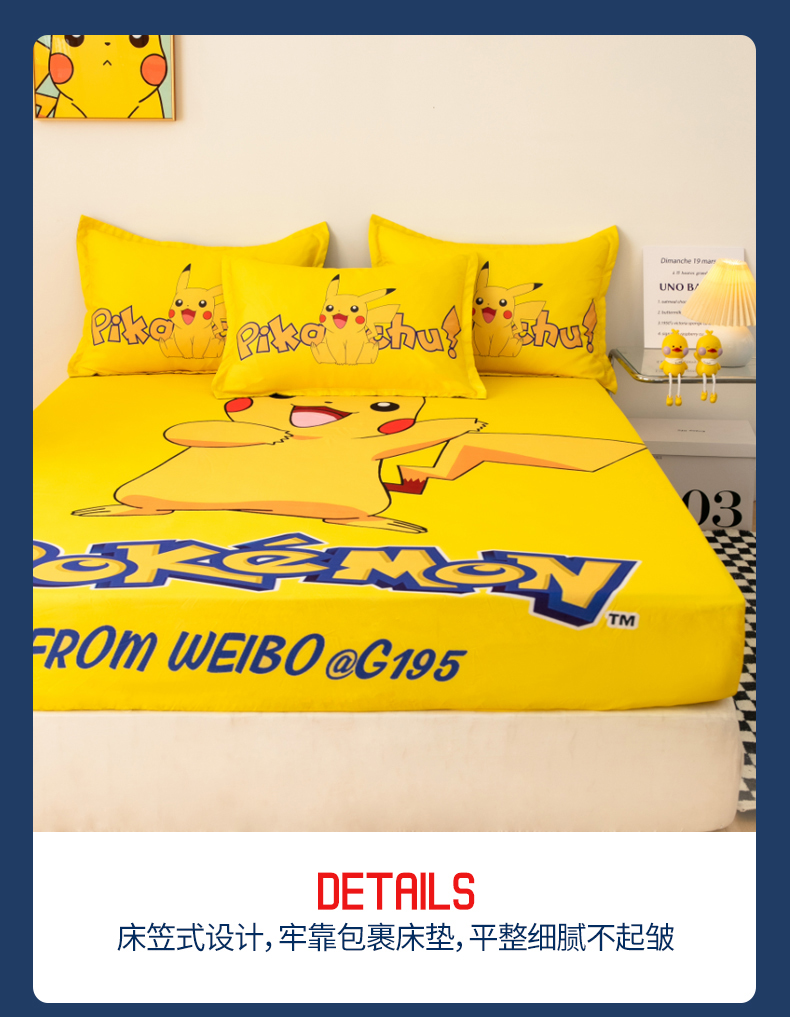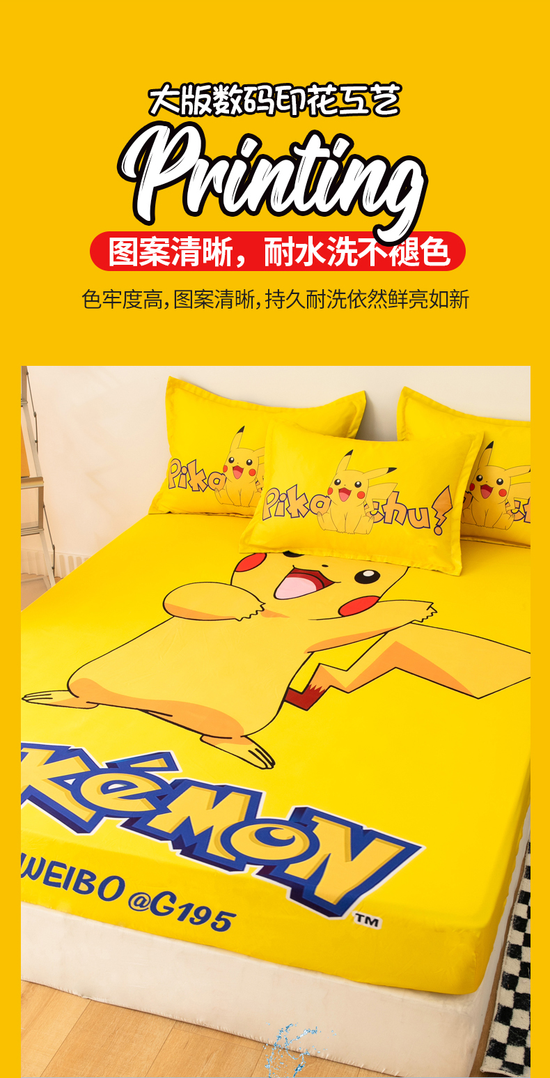 • 91家纺网 家纺一手货源 找家纺 一电 2026新款卡通床单床笠棕垫床套防尘罩席床垫保护套卡通儿童上下床单床笠-第四批 唱歌皮卡丘