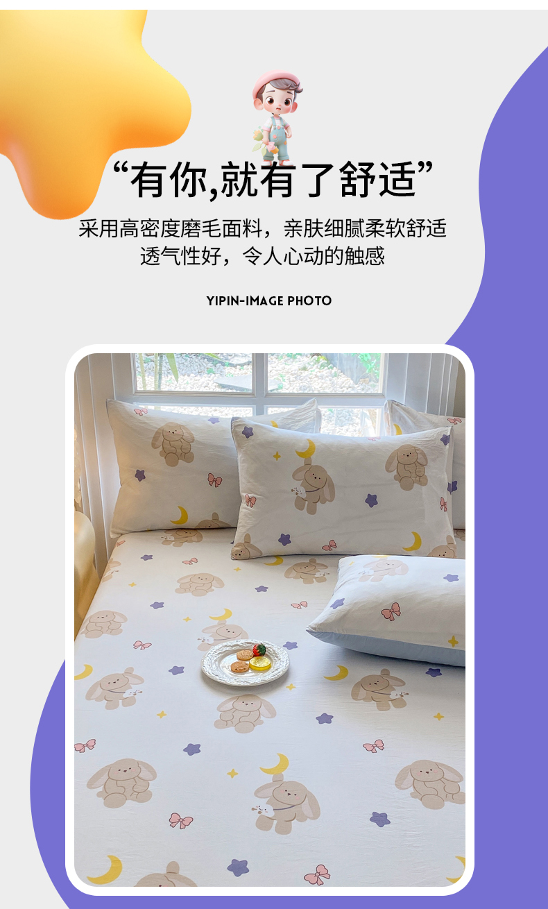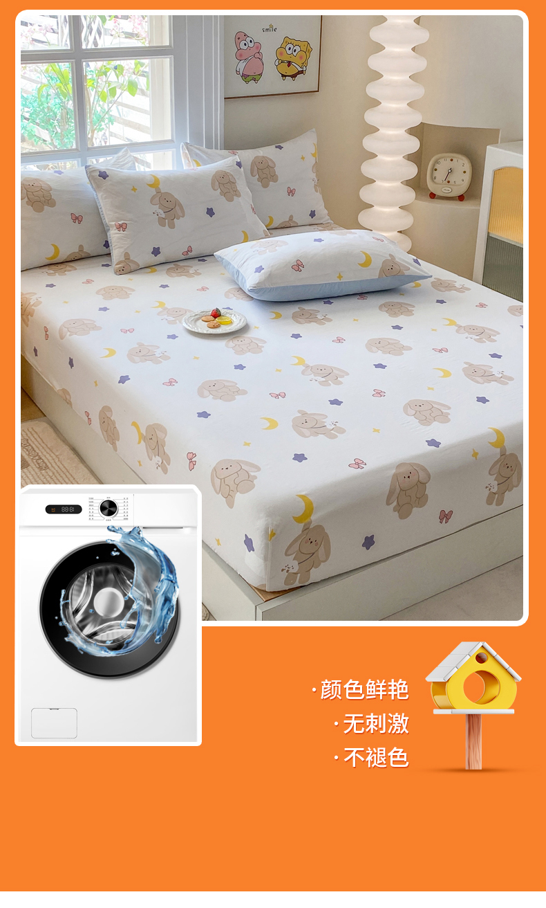 • 91家纺网 家纺一手货源 找家纺 一电 2026新款跨境电商外贸四季卡通床笠单件床罩床垫套防滑套宿舍儿童床单定制-第八批 晚安
