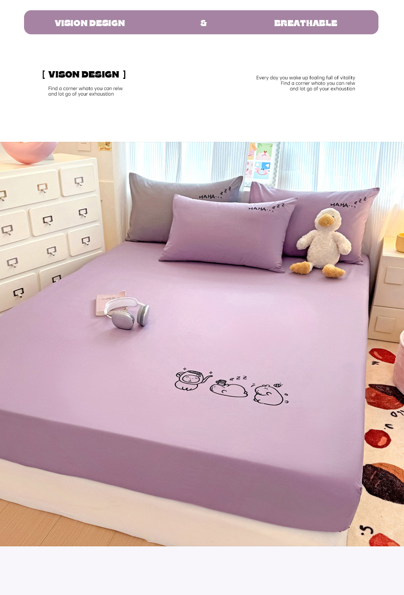 (总)布柔 2026新款床笠100%全棉纯棉13070绣花床笠(围高+30cm)-晚安,晚安床笠粉,晚安床笠黄,晚安床笠灰,晚安床笠绿,晚安床笠紫,组合图仅供展示-不可下单