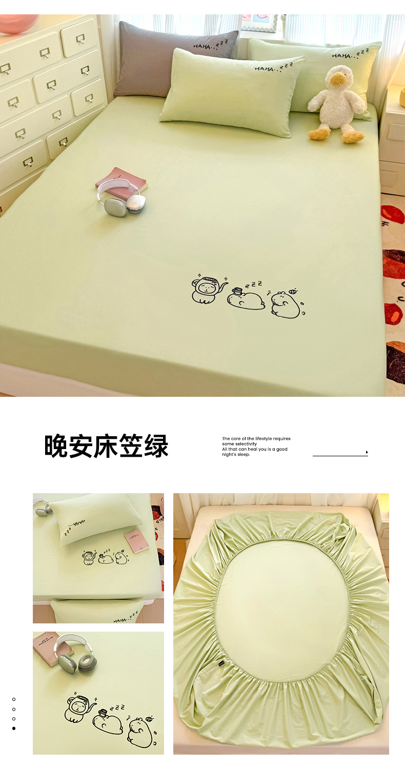 布柔 2026新款床笠100%全棉纯棉13070绣花床笠(围高+30cm)-晚安 晚安床笠绿