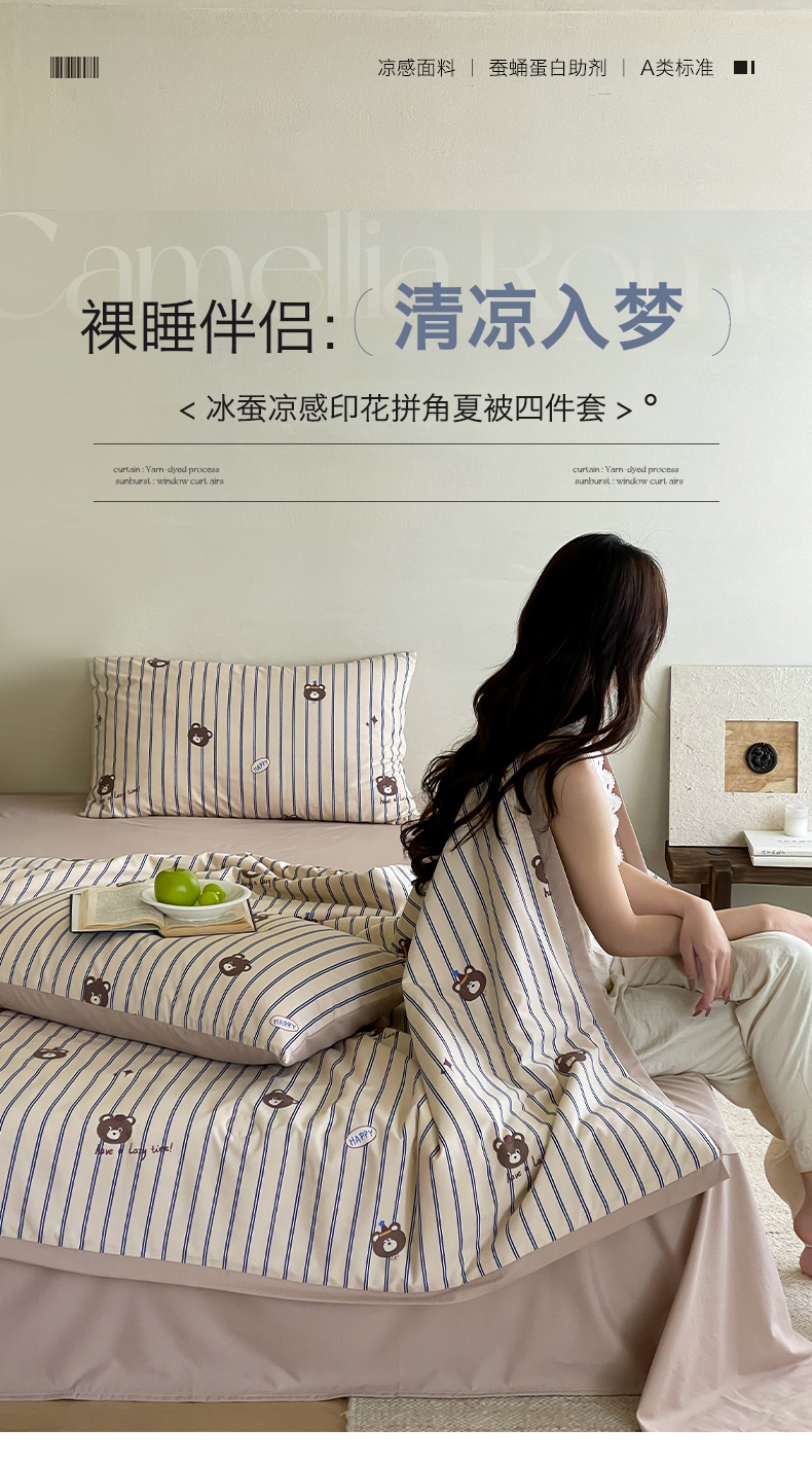 当前位置: 91家纺网 > 商品网购 > 床品套件 > 四件套 > 夏被四件套 > 一加一 2026新款冰蚕凉感印花断角夏被夏凉被空调被四件套 开心熊