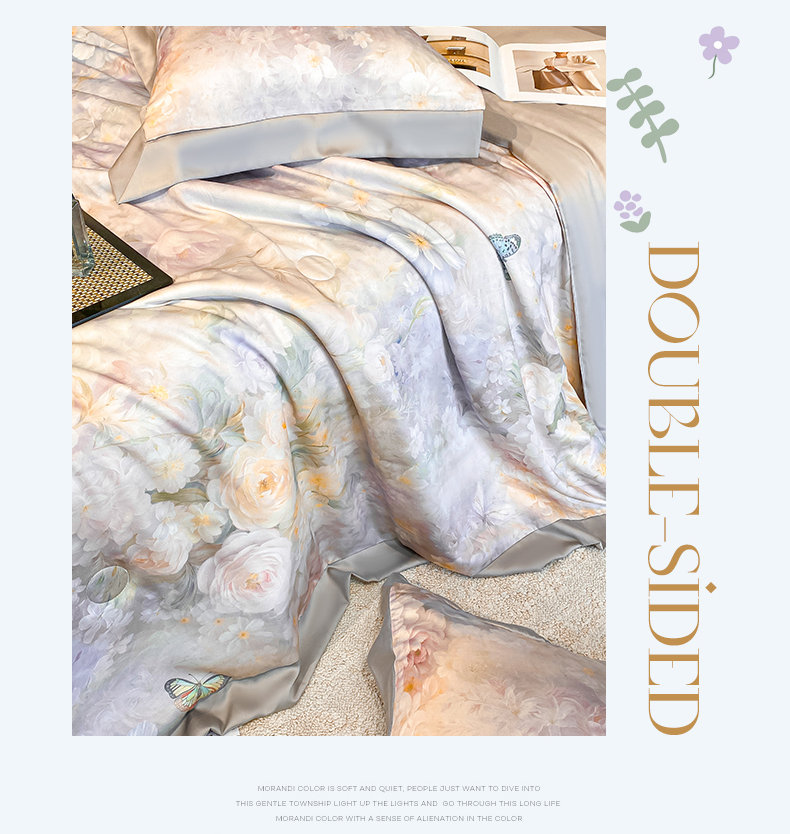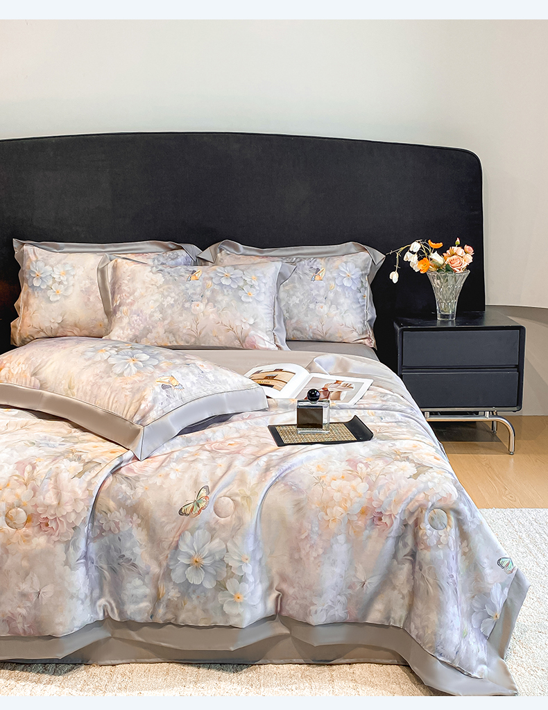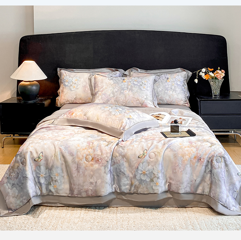 笙意家纺 2026A类水洗冰丝数码印花宽边夏被四件套馥韵