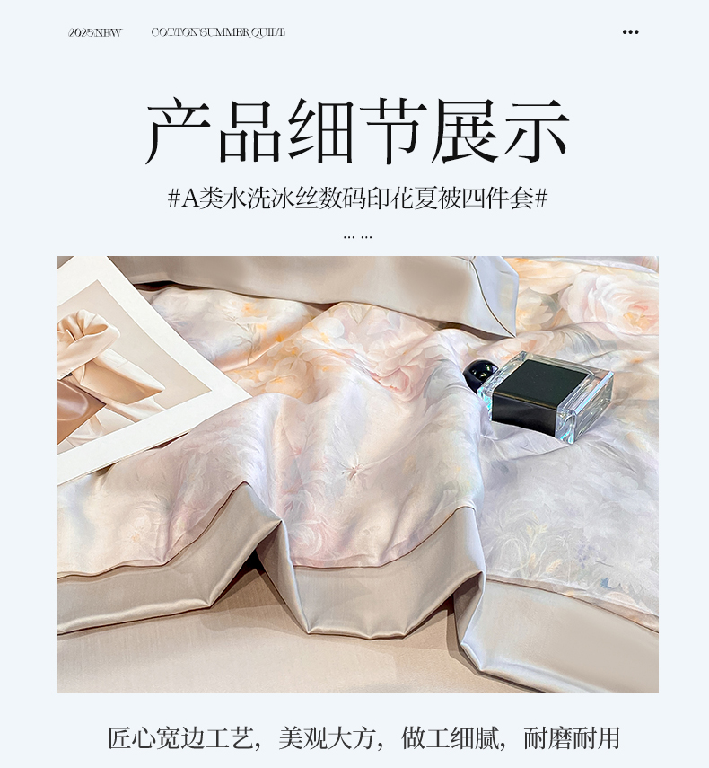 • 91家纺网 家纺一手货源 找家纺 笙意家纺 2026A类水洗冰丝数码印花宽边夏被四件套馥韵
