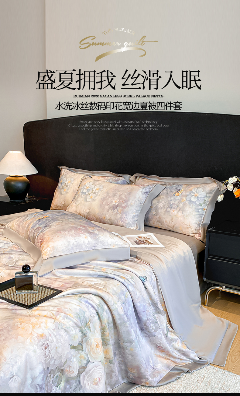 • 91家纺网 家纺一手货源 找家纺 笙意家纺 2026A类水洗冰丝数码印花宽边夏被四件套馥韵 91家纺网 家纺一手货源 找家纺 笙意家纺 2026A类水洗冰丝数码印花宽边夏被四件套馥韵
