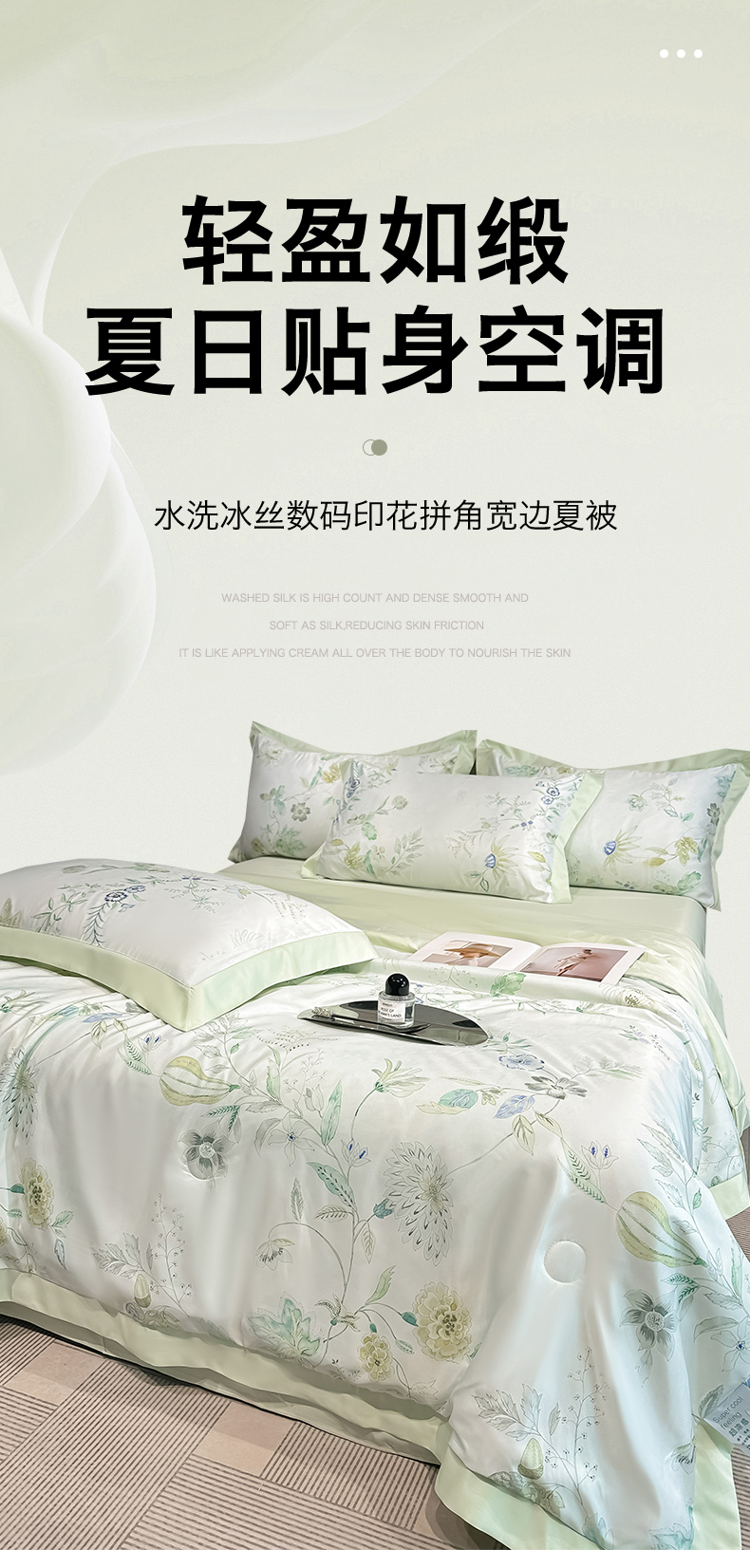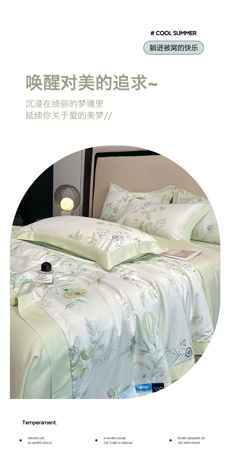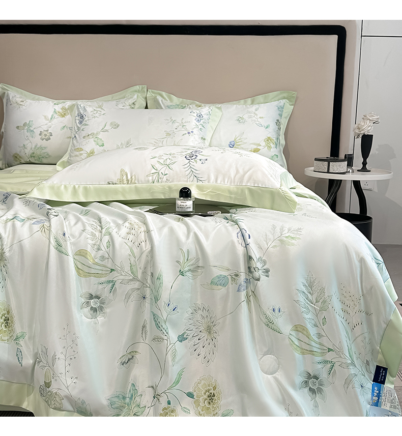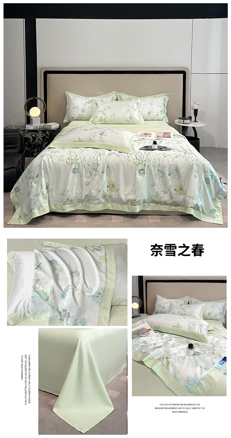 • 91家纺网 家纺一手货源 找家纺 笙意家纺 2026A类水洗冰丝数码印花宽边夏被四件套奈雪之春