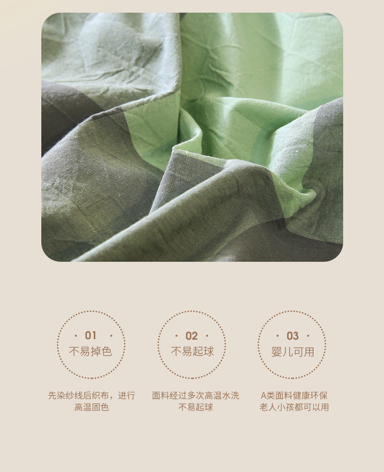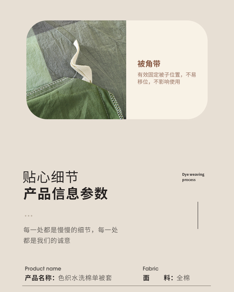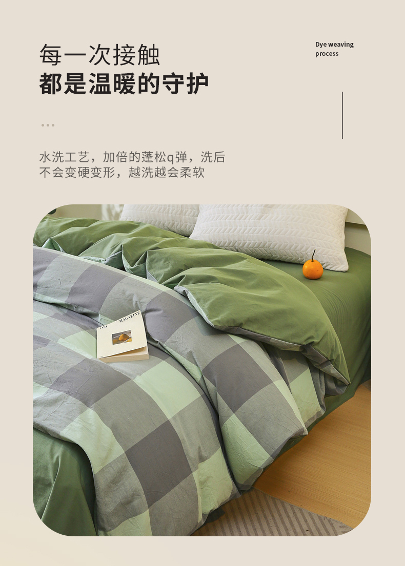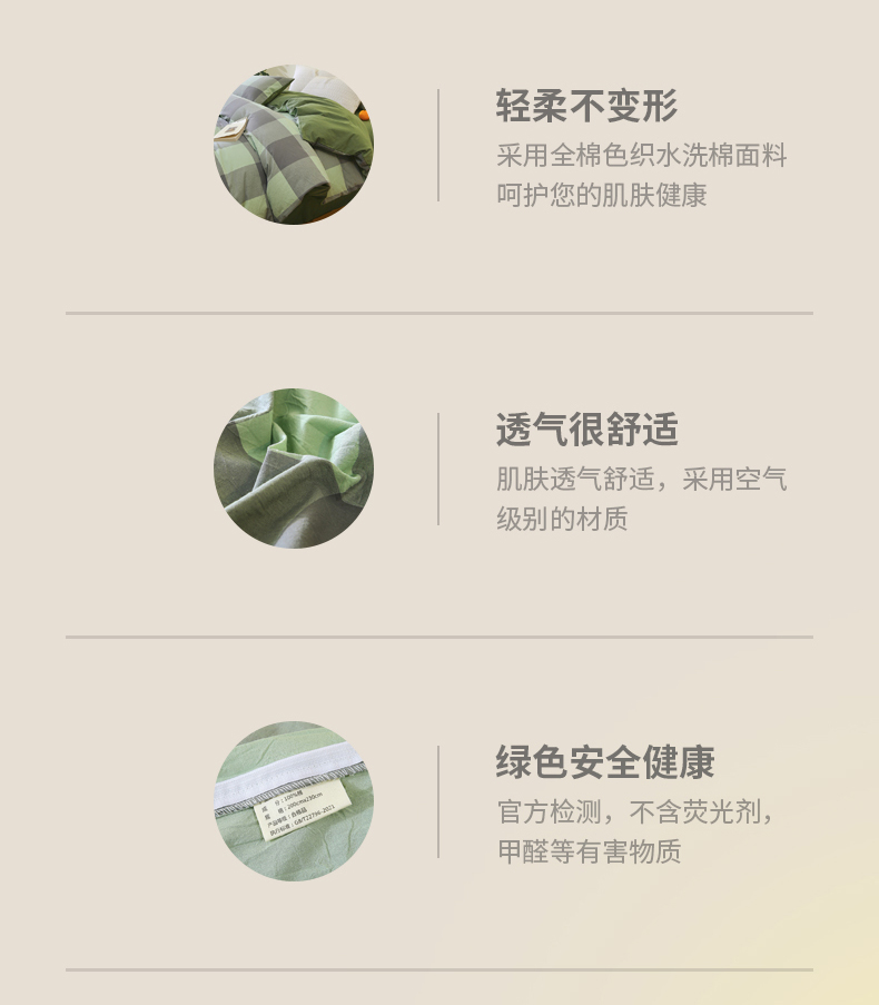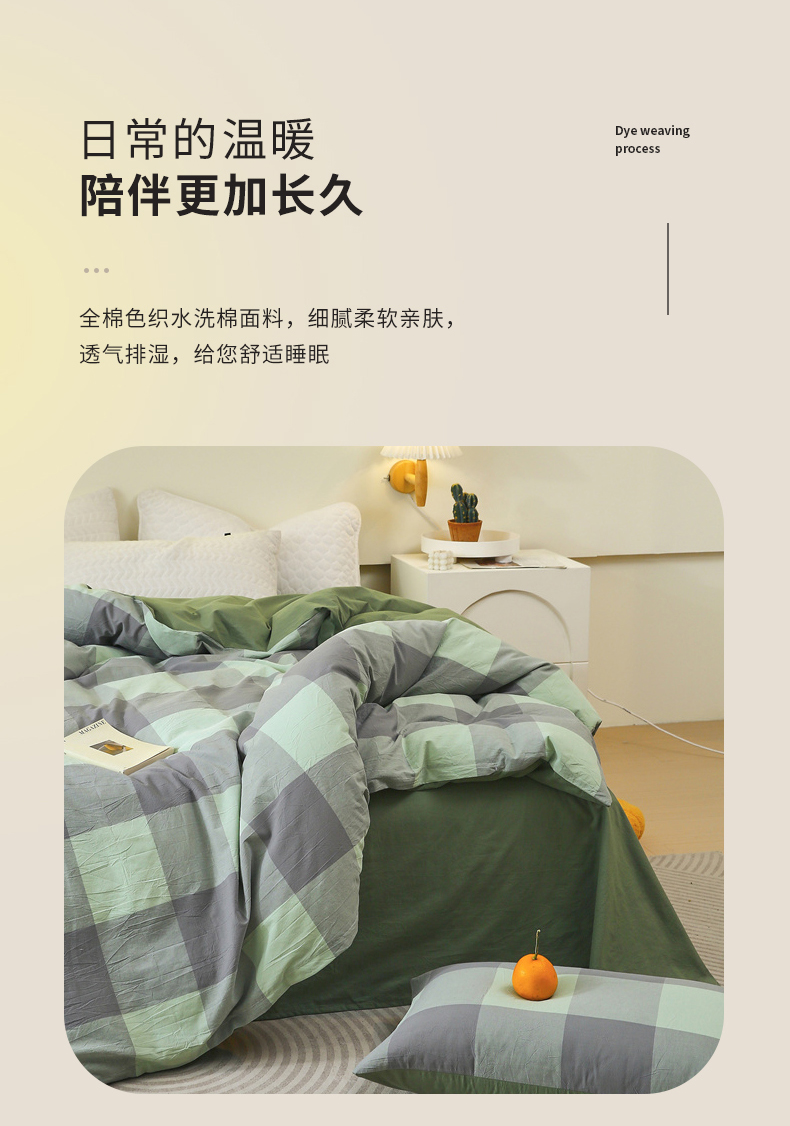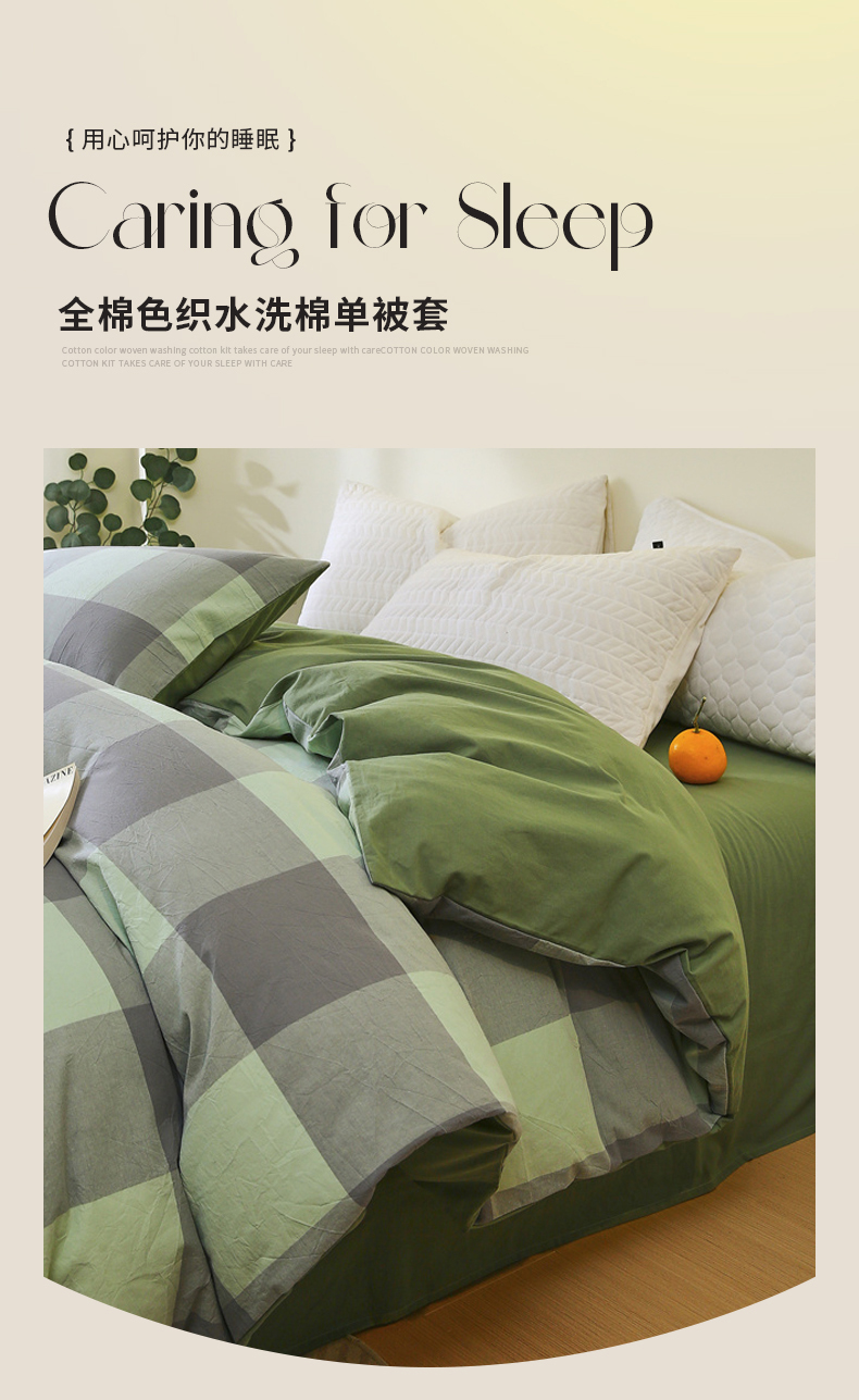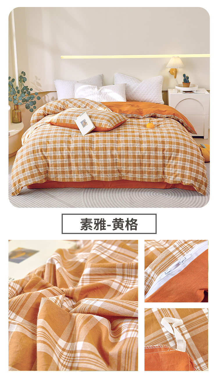 商品名称:春皖家纺 2026新款色织AB版水洗棉三件套四件套单品系列(单被套风格一) 素雅-清格