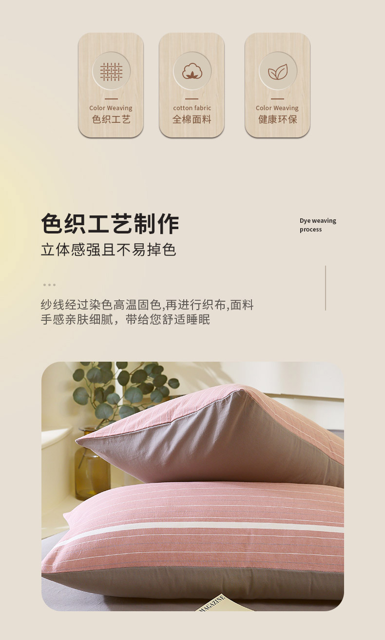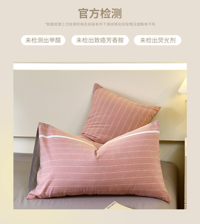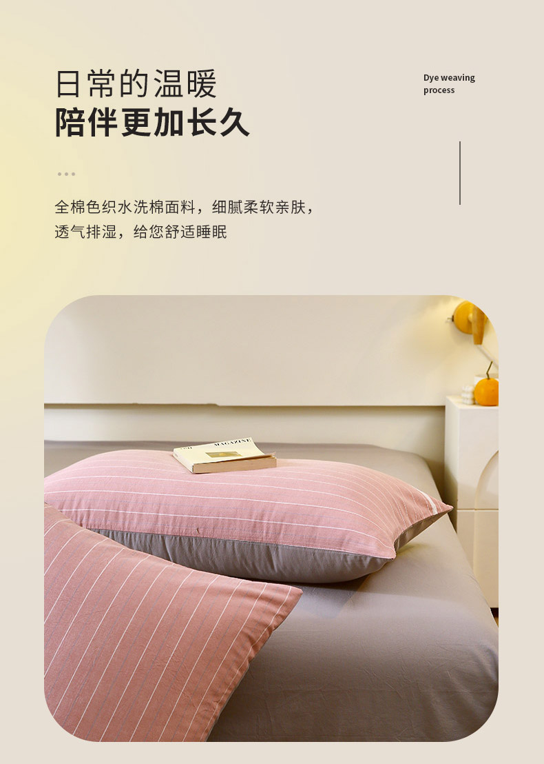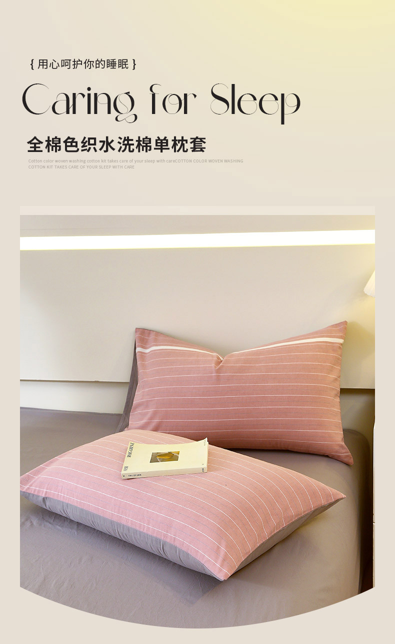 春皖家纺 2026新款色织AB版水洗棉三件套四件套单品系列(单枕套风格一) 素雅-蔻粉