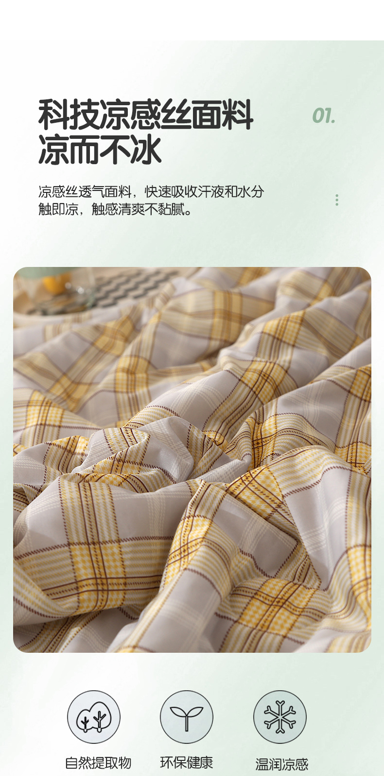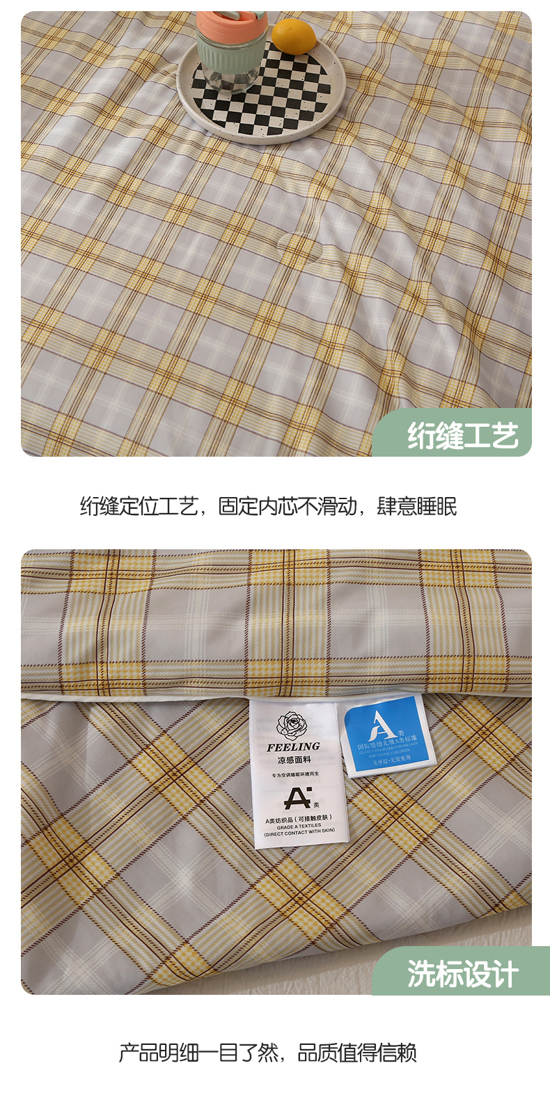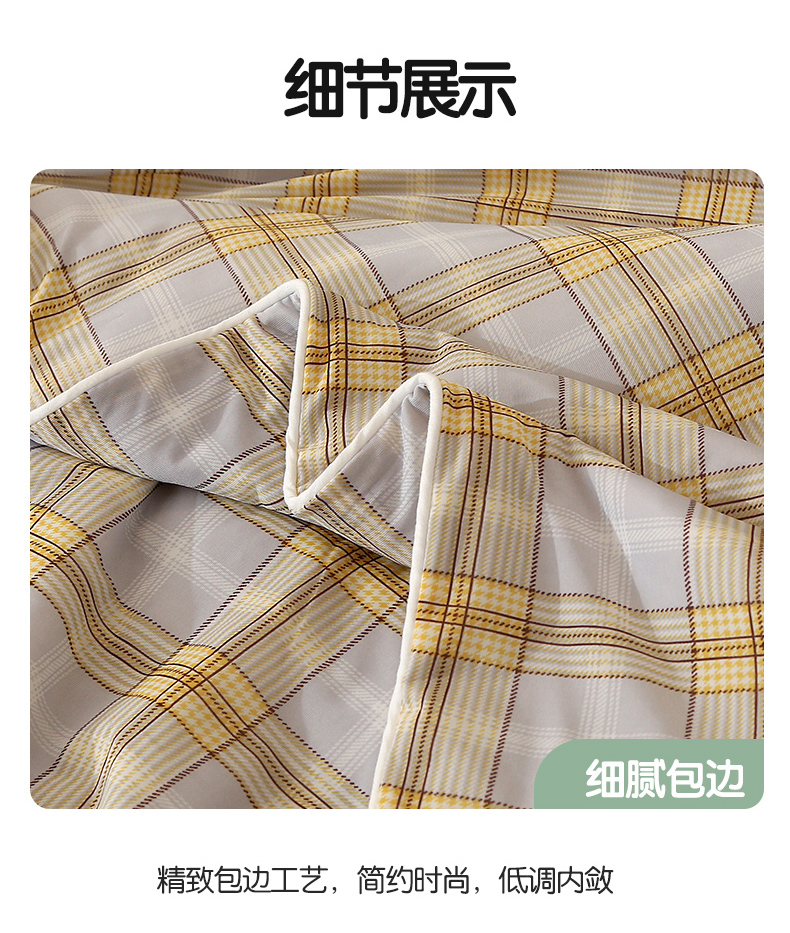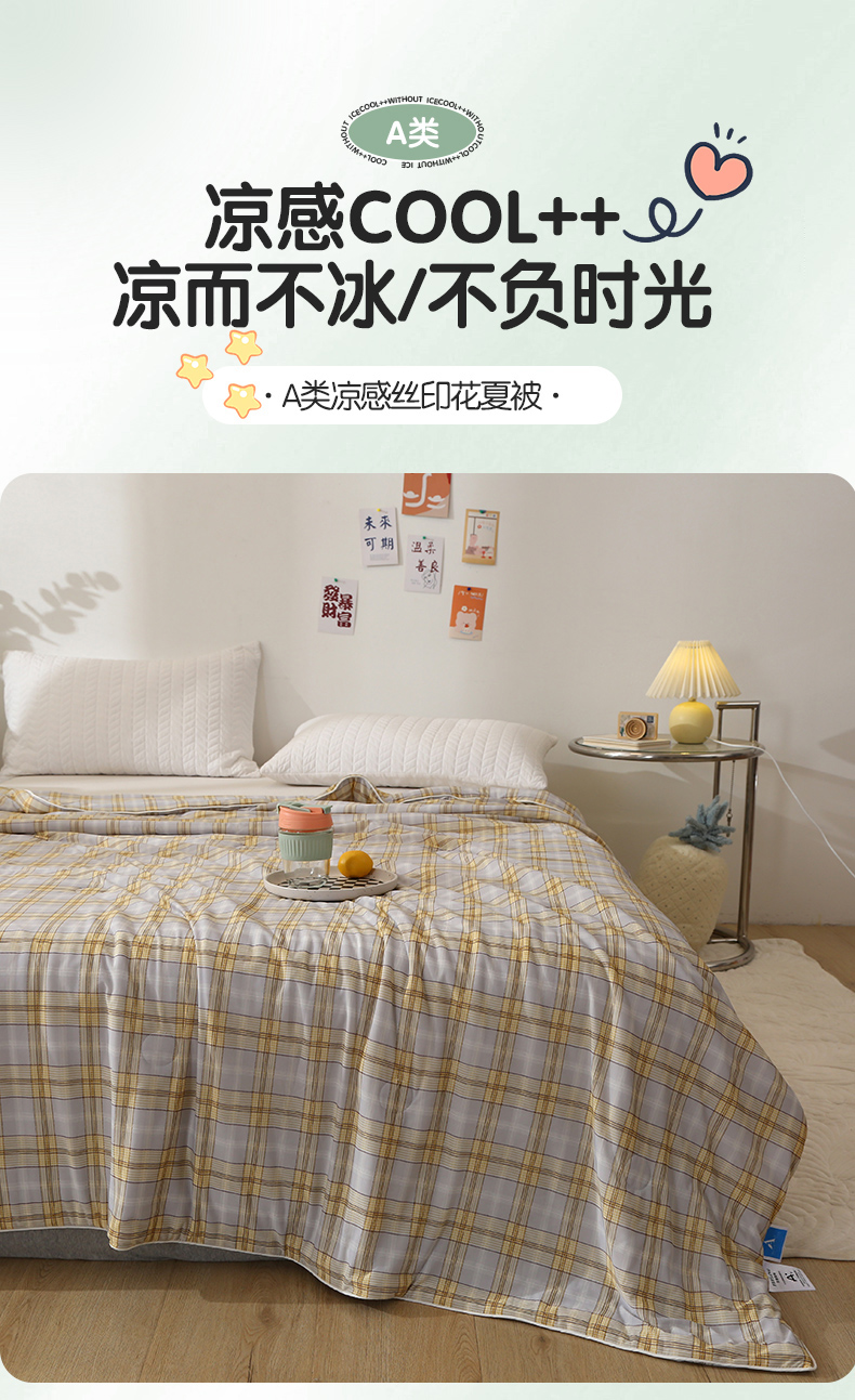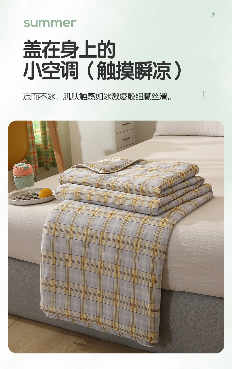 商品名称:薇玛仕 2026爆款新款印花凉感丝夏凉被空调被带氨自带凉感夏被 灰黄条格