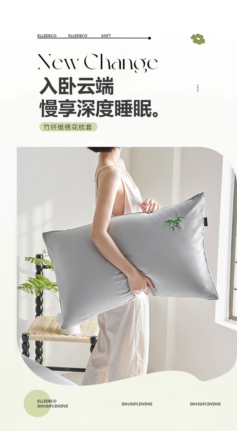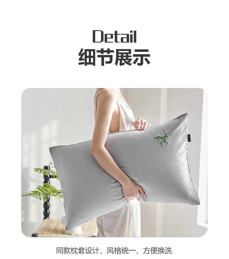 商品名称:春皖家纺 2026新款A类竹纤维绣花床单凉席系列-单枕套风格2 雅岩灰