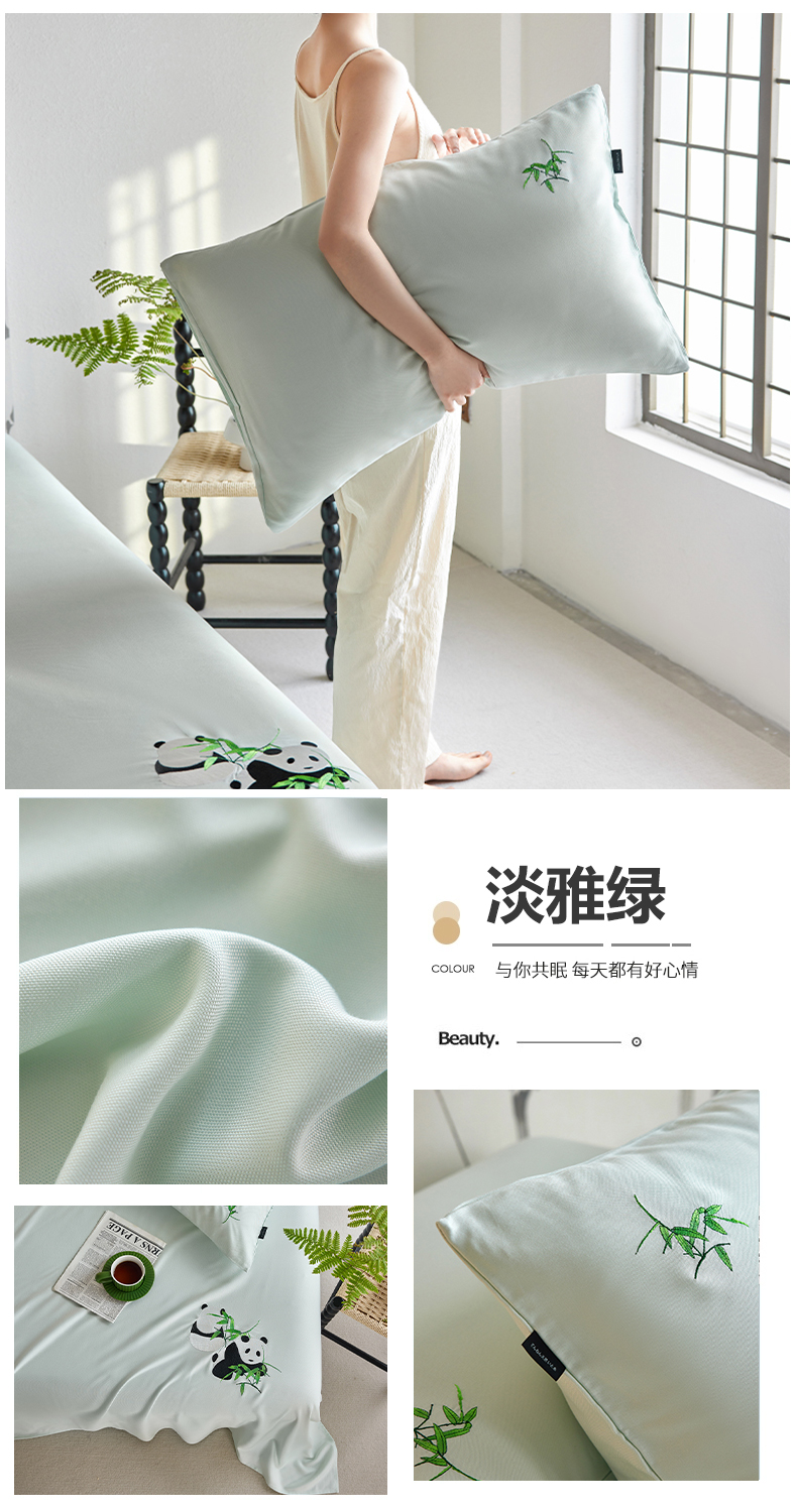 (总)2024新款竹纤维绣花床单凉席风格二枕套,流星蓝,浅藕粉,淡雅绿,苍岭绿,雅岩灰,霞光紫