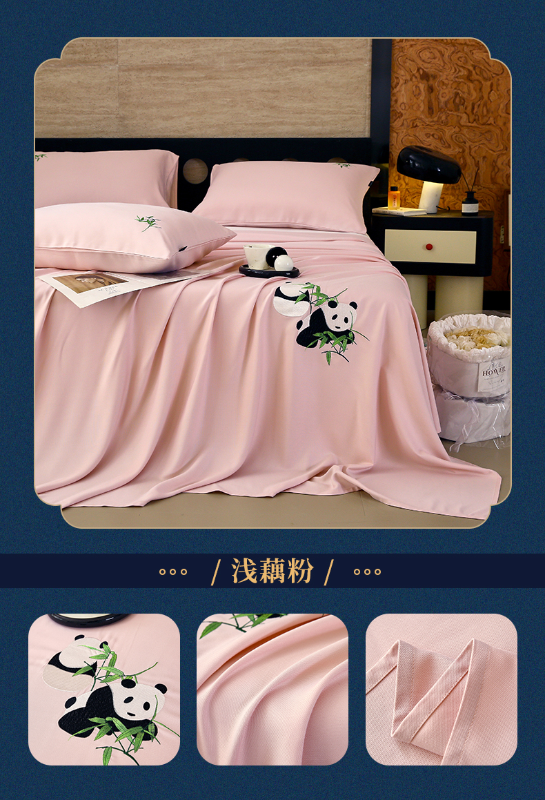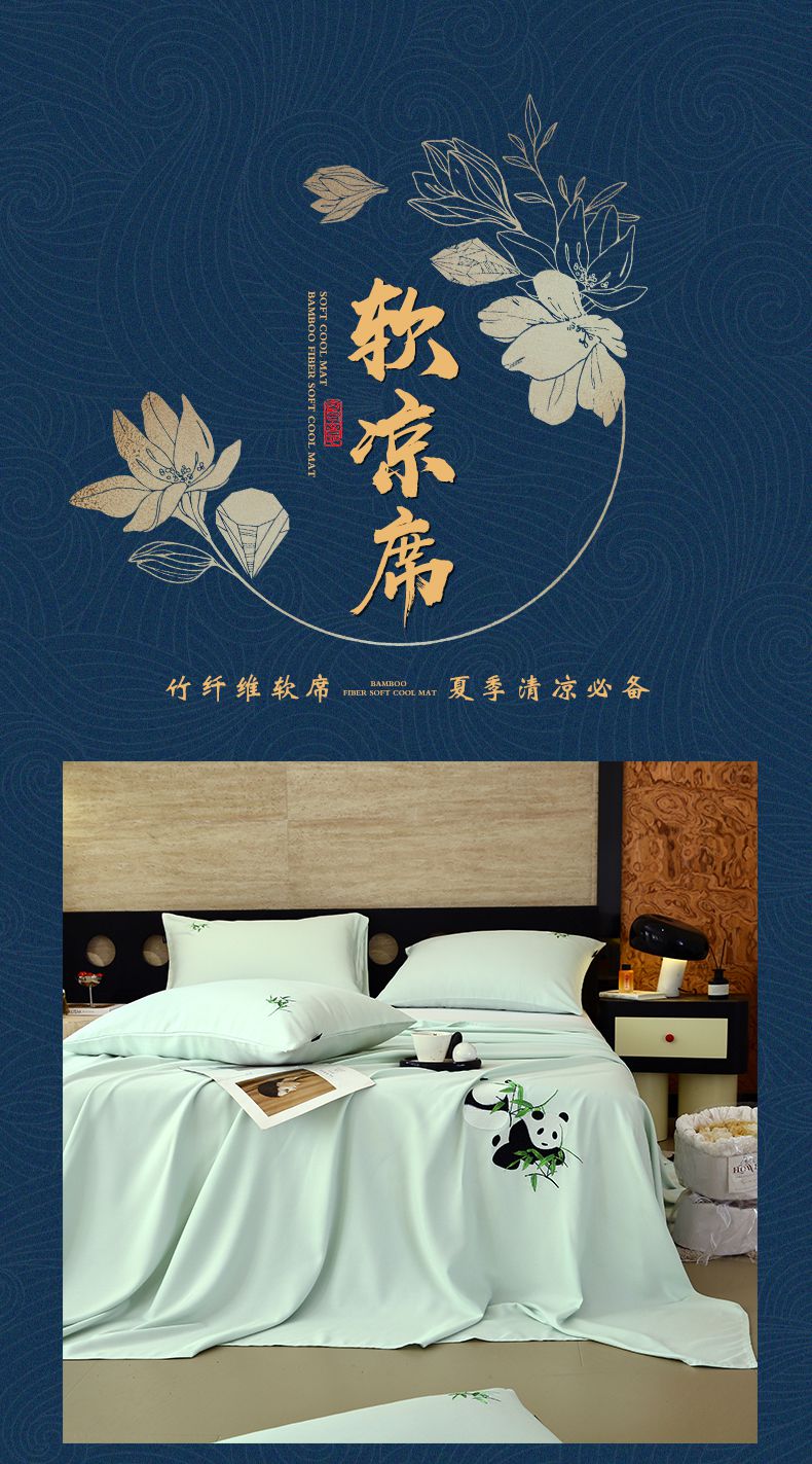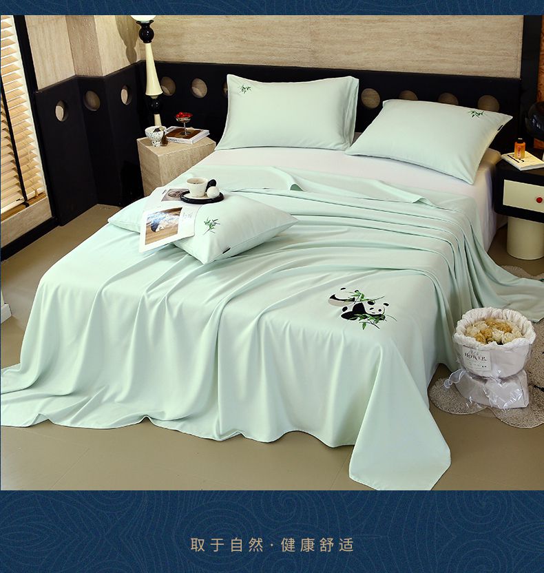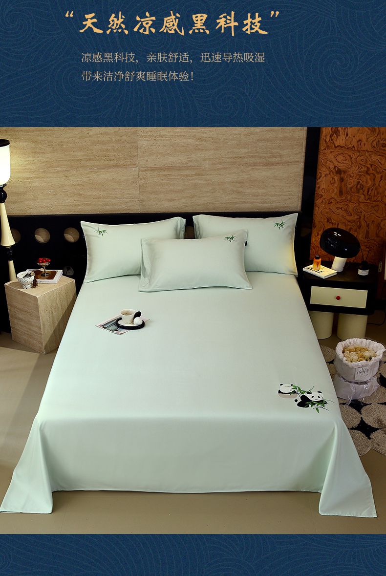 春皖家纺 2026新款A类竹纤维绣花床单凉席系列-风格1 淡雅绿