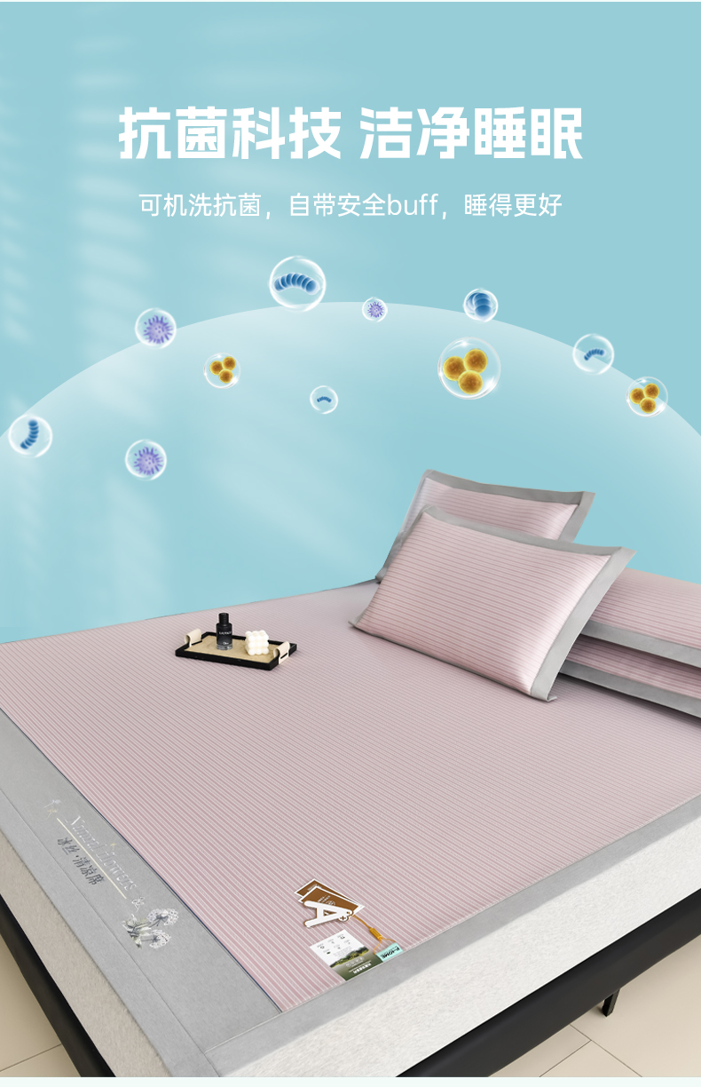 (总)小牛席业 2026新款小冰块大象凉感冰丝席凉席竹席藤席冰藤席乳胶席豆豆席,粉色,香槟,灰色,绿色,蓝色