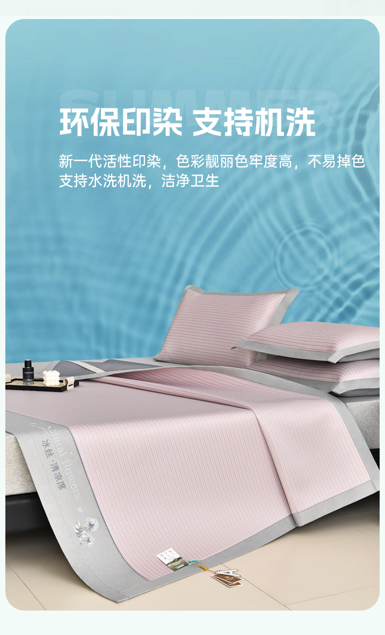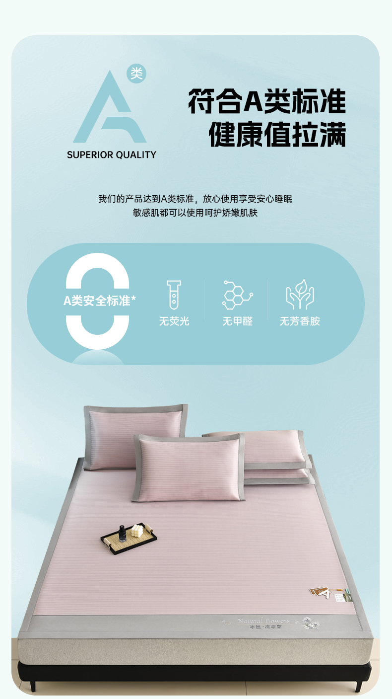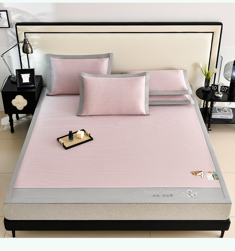 (总)2023新款超精密冰丝席-小斜纹系列-床笠款藤席凉席竹席,粉色,蓝色,绿色,银灰