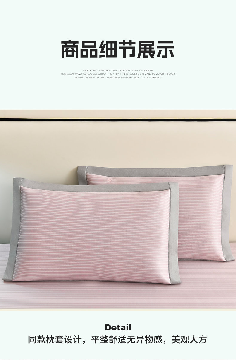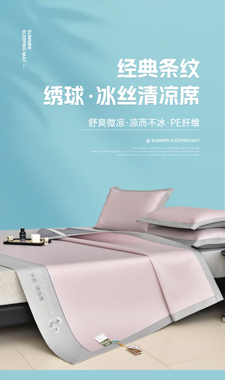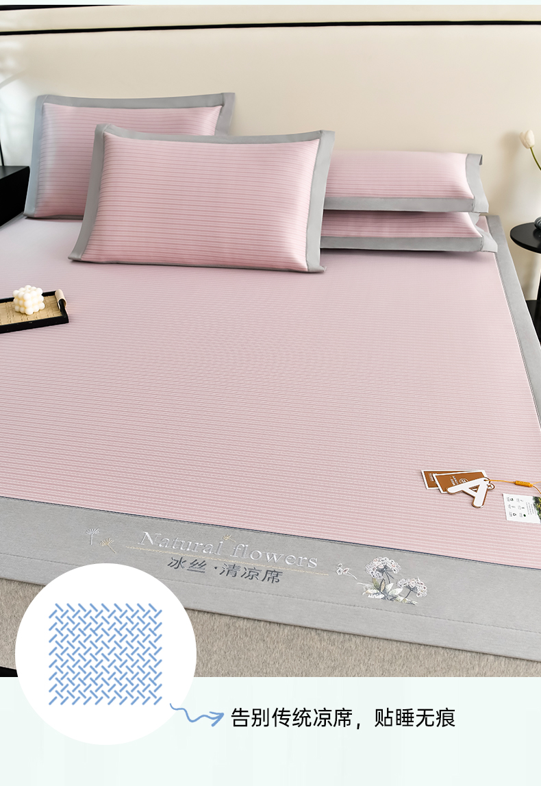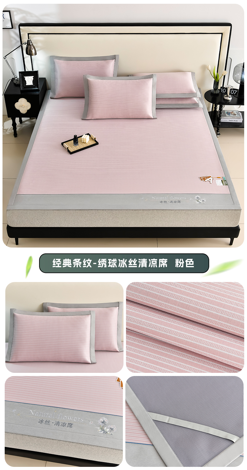商品名称:小牛席业 2026新款经典条纹-绣球冰丝清凉席系列凉席藤席冰藤双面席冰丝席竹席凉席空调席草席三件套 粉色