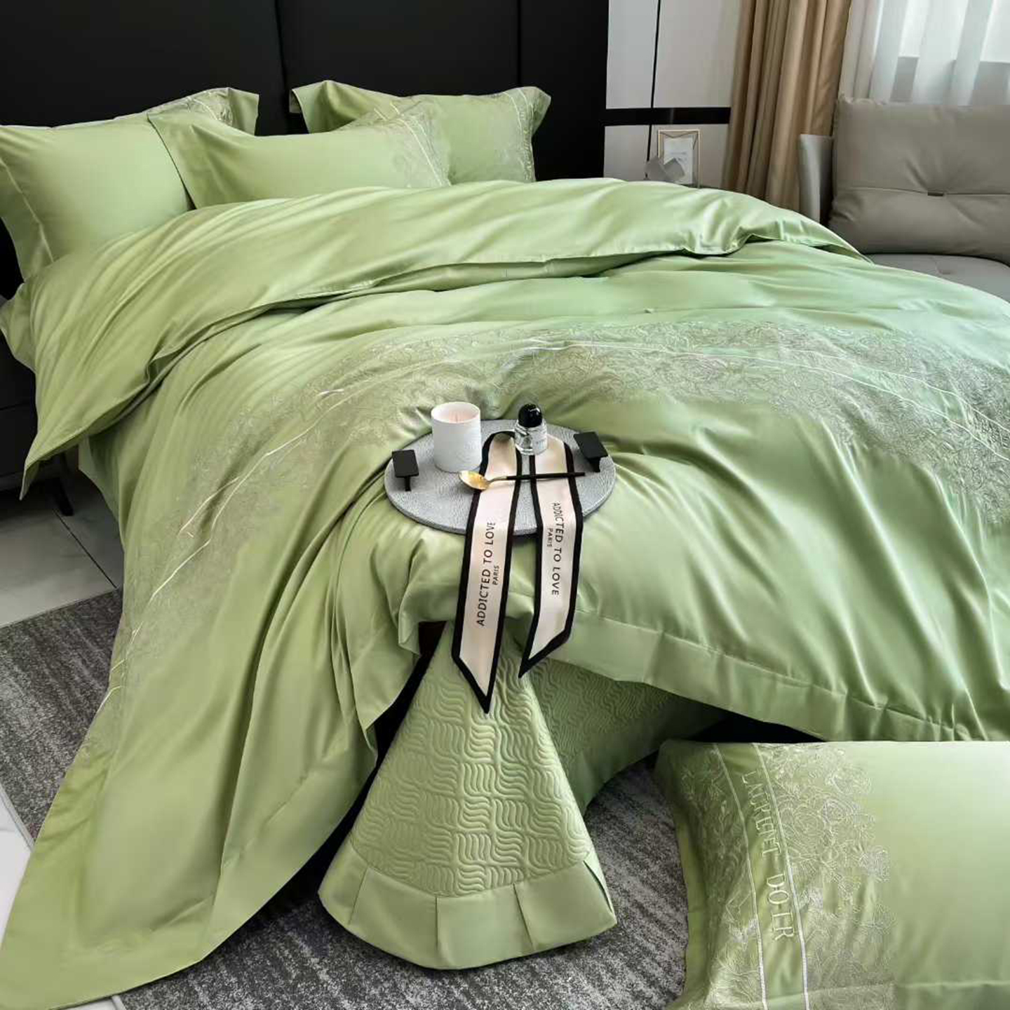 商品名称:edra 2026新款纯棉长绒棉轻奢刺绣床盖款四件套-迪奥 迪奥绿