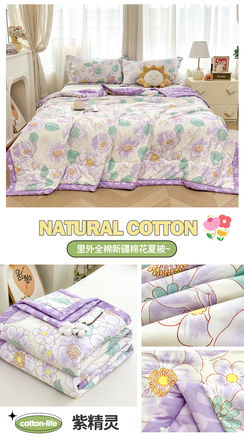 商品名称:易博家纺 2026新款小清新款里外全棉纯棉夏被夏凉被空调被 紫韵花