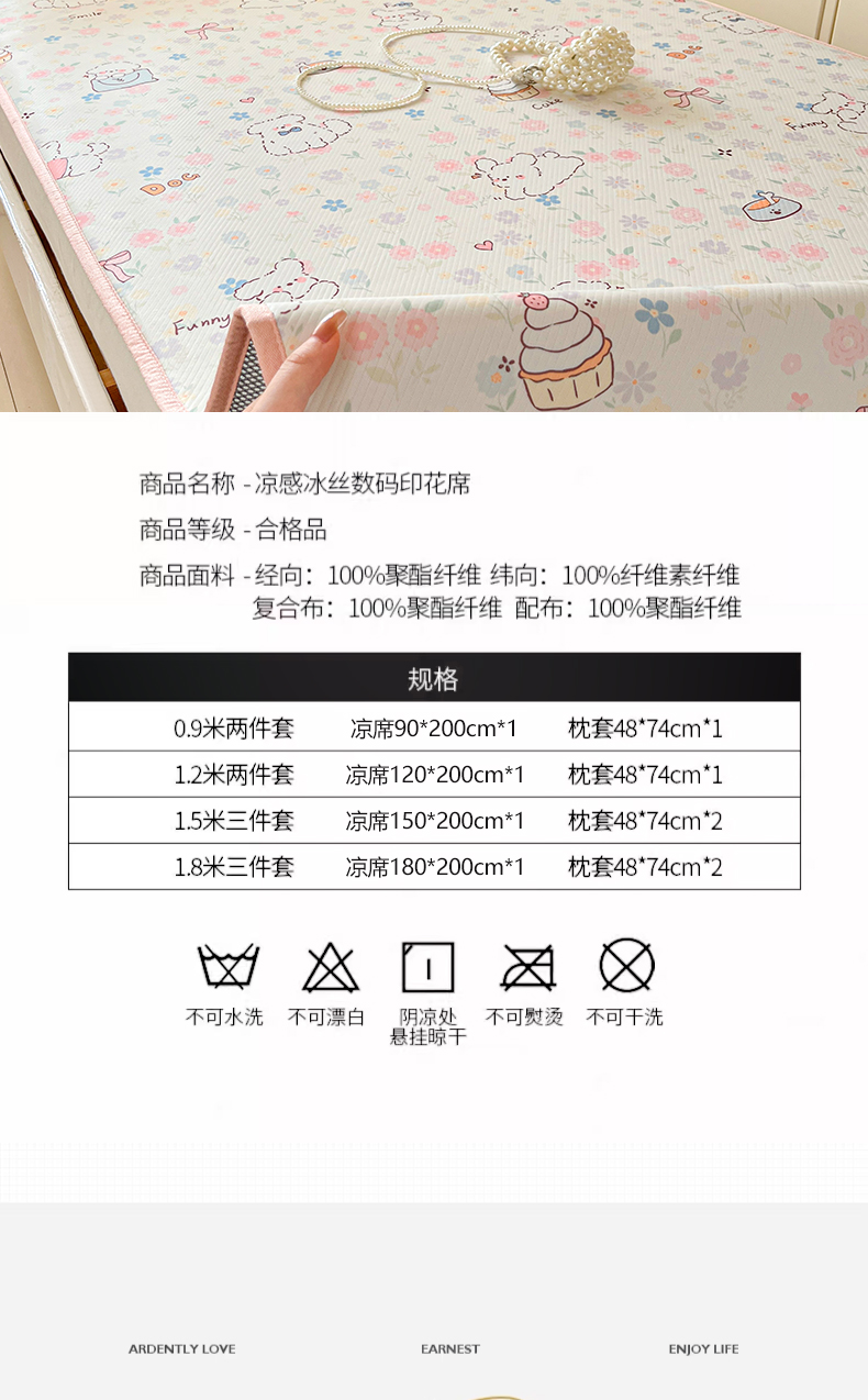 • 91家纺网 家纺一手货源 找家纺 川悦生活 2026新款凉感冰丝席小阪凉感冰丝数码印花席学生床 席快乐星晴