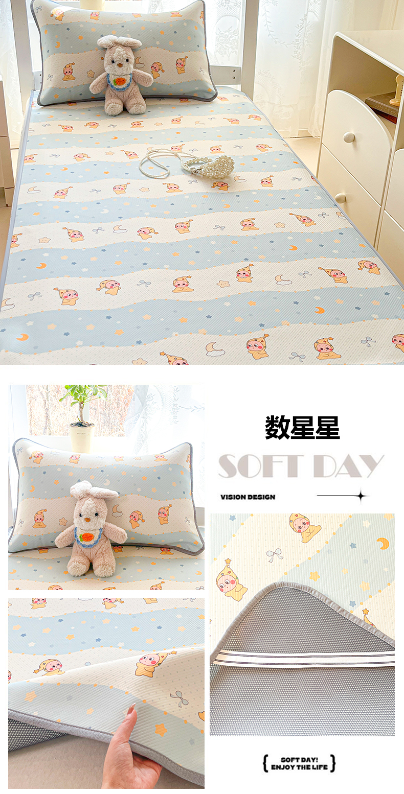 川悦生活 2026新款凉感冰丝席小阪凉感冰丝数码印花席学生床 席快乐星晴