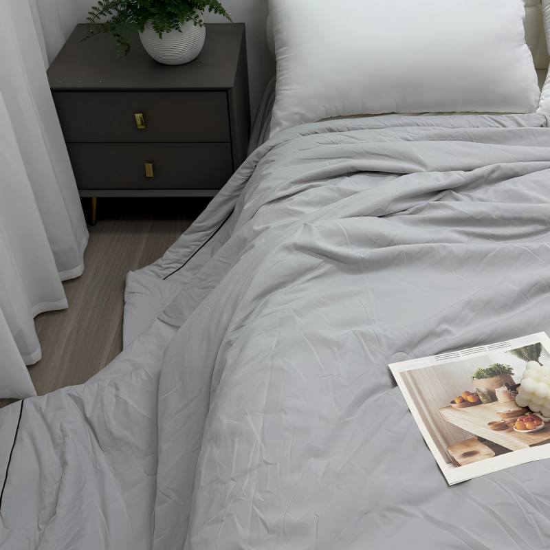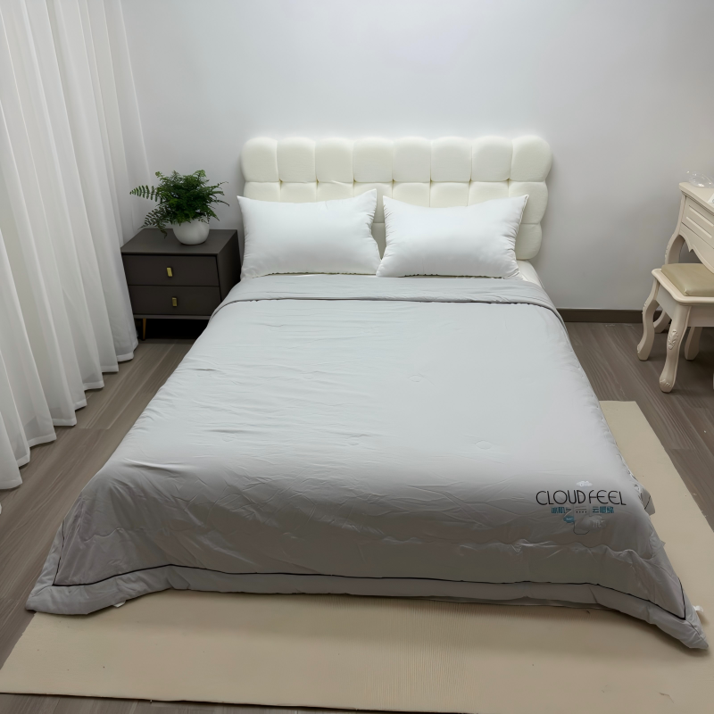 申龙家纺 2026新款云感棉斜条夏被 云雾灰