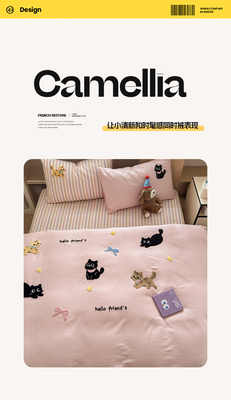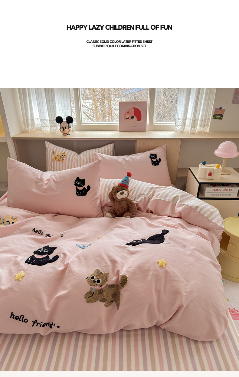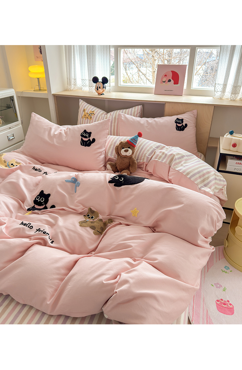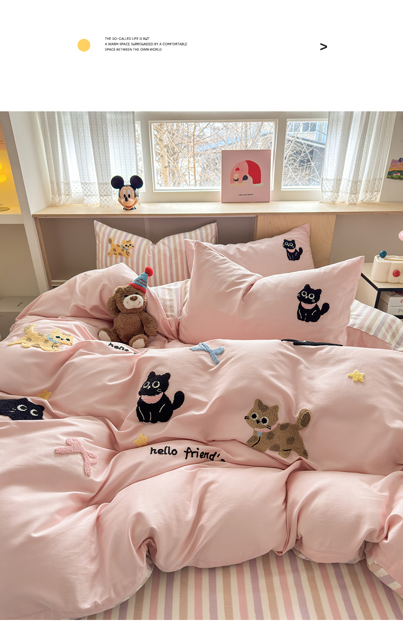 当前位置: 91家纺网 > 商品网购 > 床品套件 > 四件套 > 全棉普通四件套 > 如意朵 2026新款全棉纯棉毛巾绣四件套(第二批) 猫咪家族