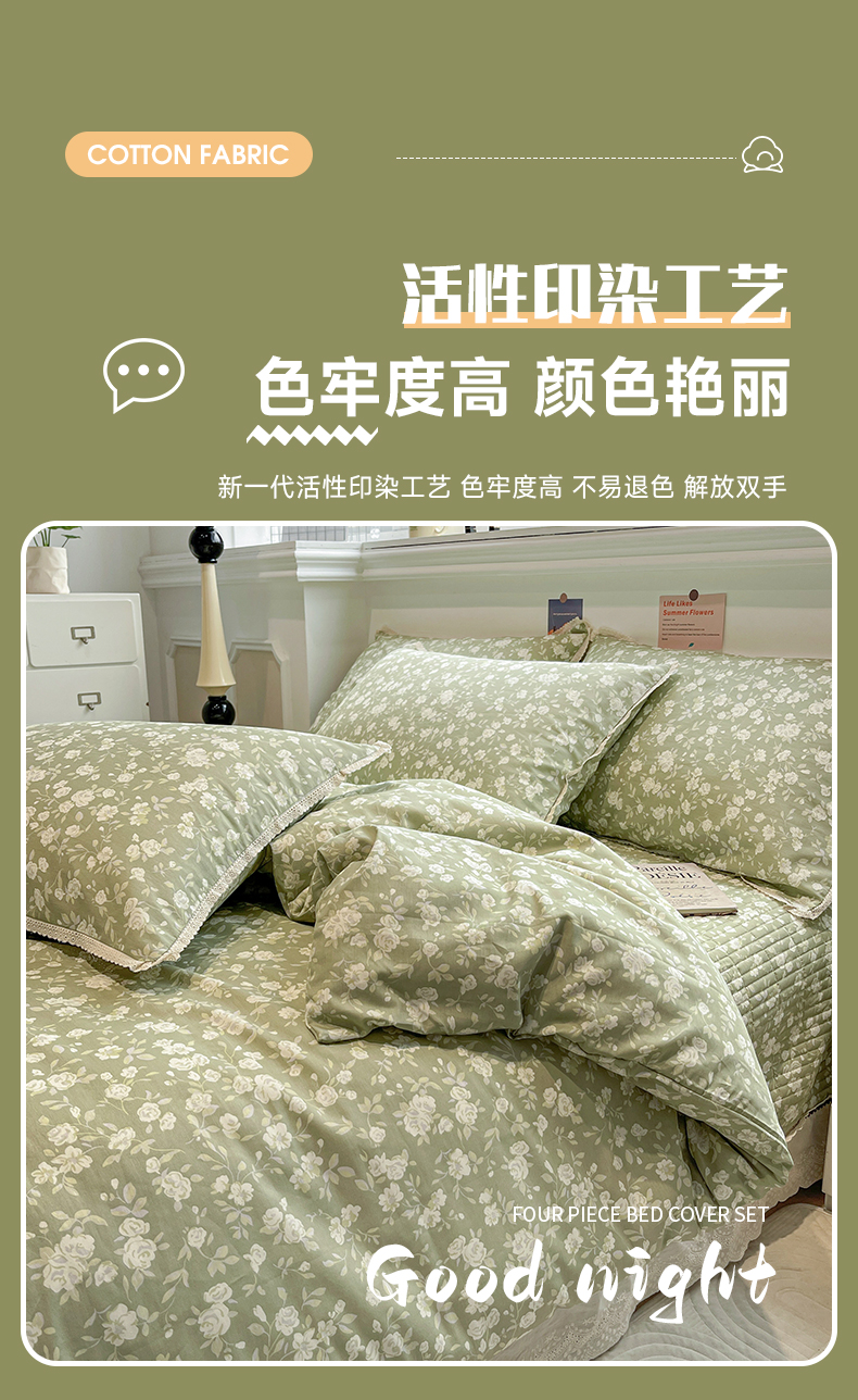 娜朵家纺 2026新款全棉印花床盖四件套 花开朵朵,花开朵朵