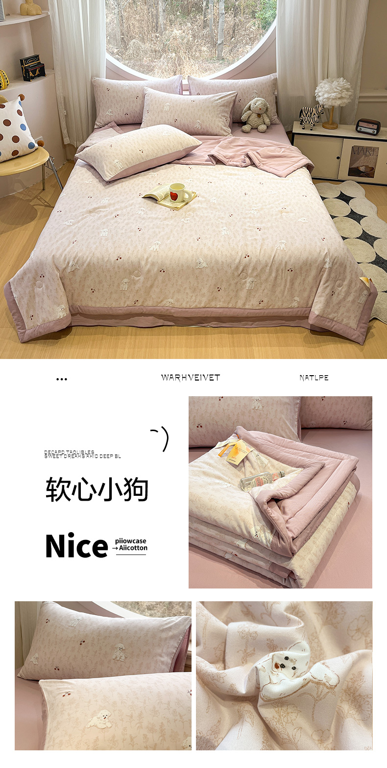 (总)一加一 2025新款全棉双层皱皱纱毛巾绣抗菌大豆被芯,快乐狗,腊肠狗,甜甜小丸子,星愿树,熊猫派对