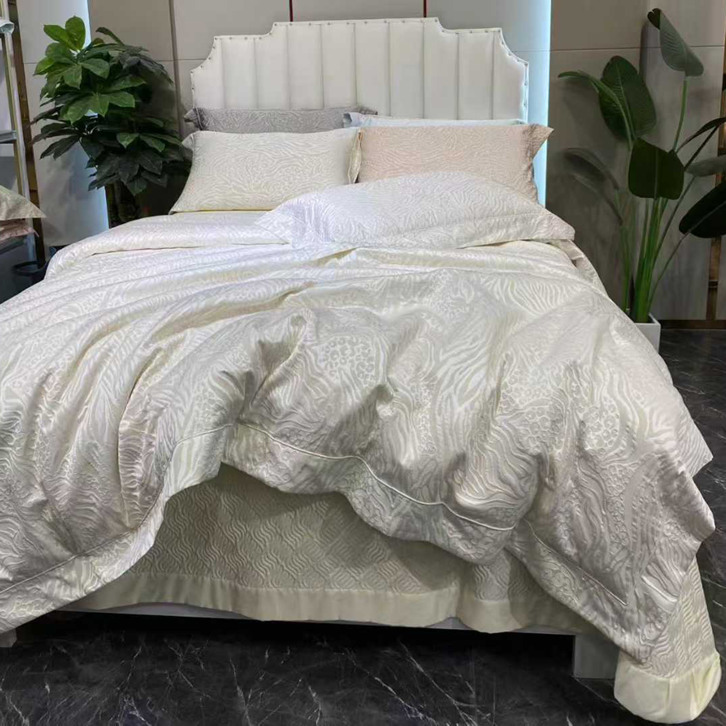 (总)edra 2026新款真丝天丝轻奢提花床盖款四件套-拉斐尔,香槟白,粉,银灰,金咖,蓝