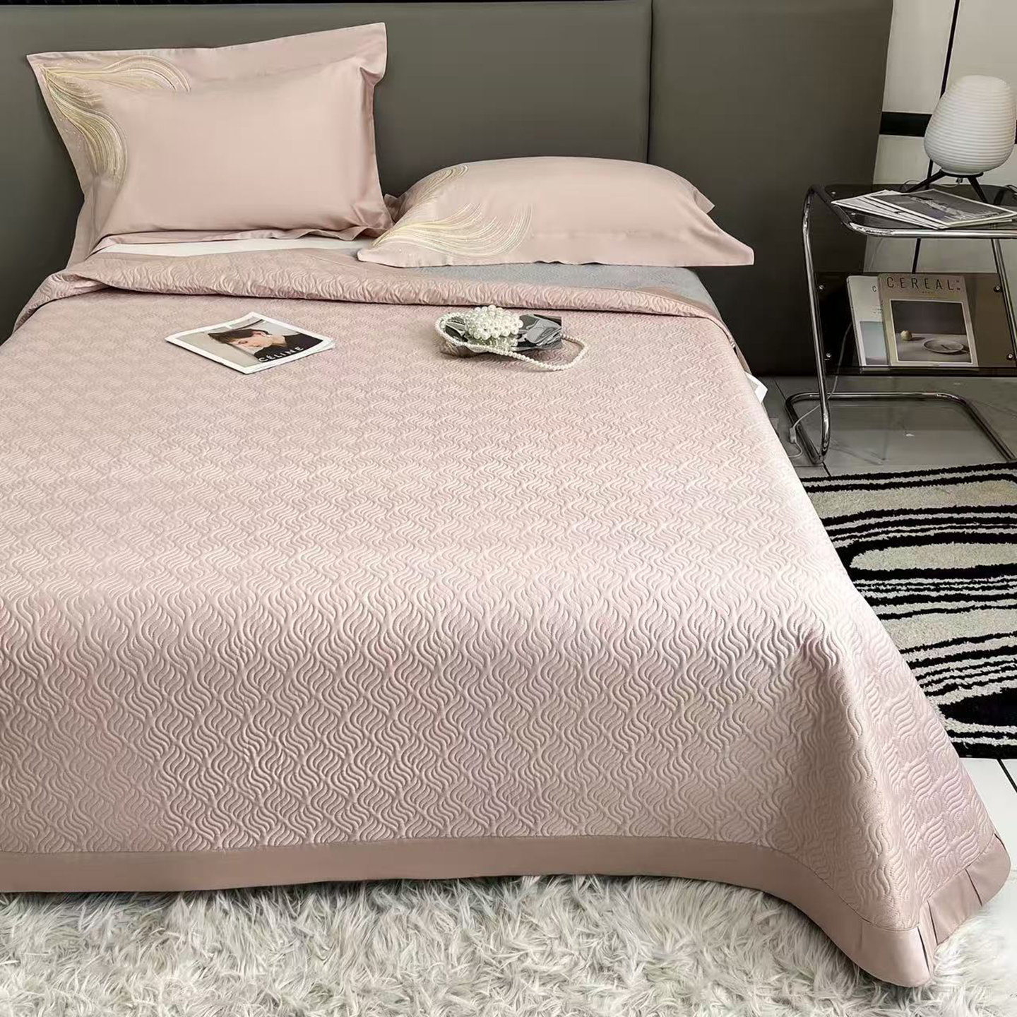 (总)edra 2026新款真丝天丝轻奢提花床盖款四件套-拉斐尔,香槟白,粉,银灰,金咖,蓝