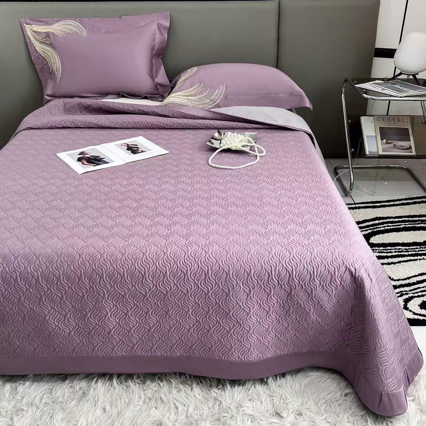 商品名称:edra 2026新款纯棉长绒棉轻奢刺绣床盖款四件套-北极光 北极光-紫