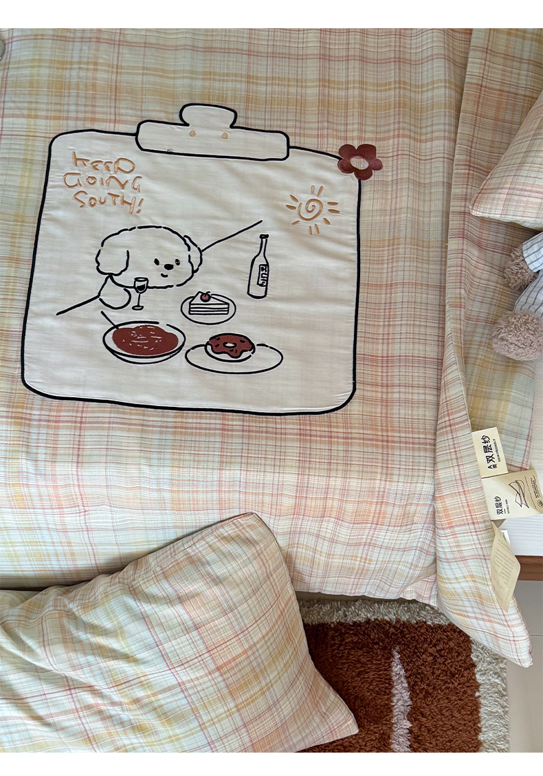 • 91家纺网 家纺一手货源 找家纺 一加一 2026新款全棉双层纱贴布绣大豆夏被-格格乐园 粉彩早餐熊