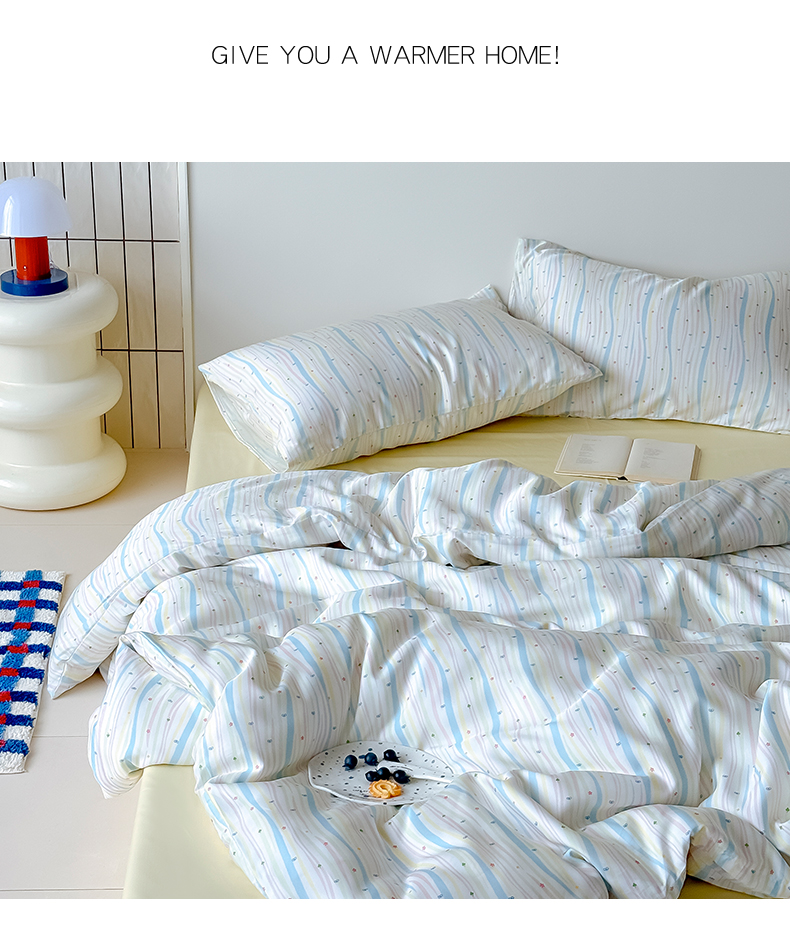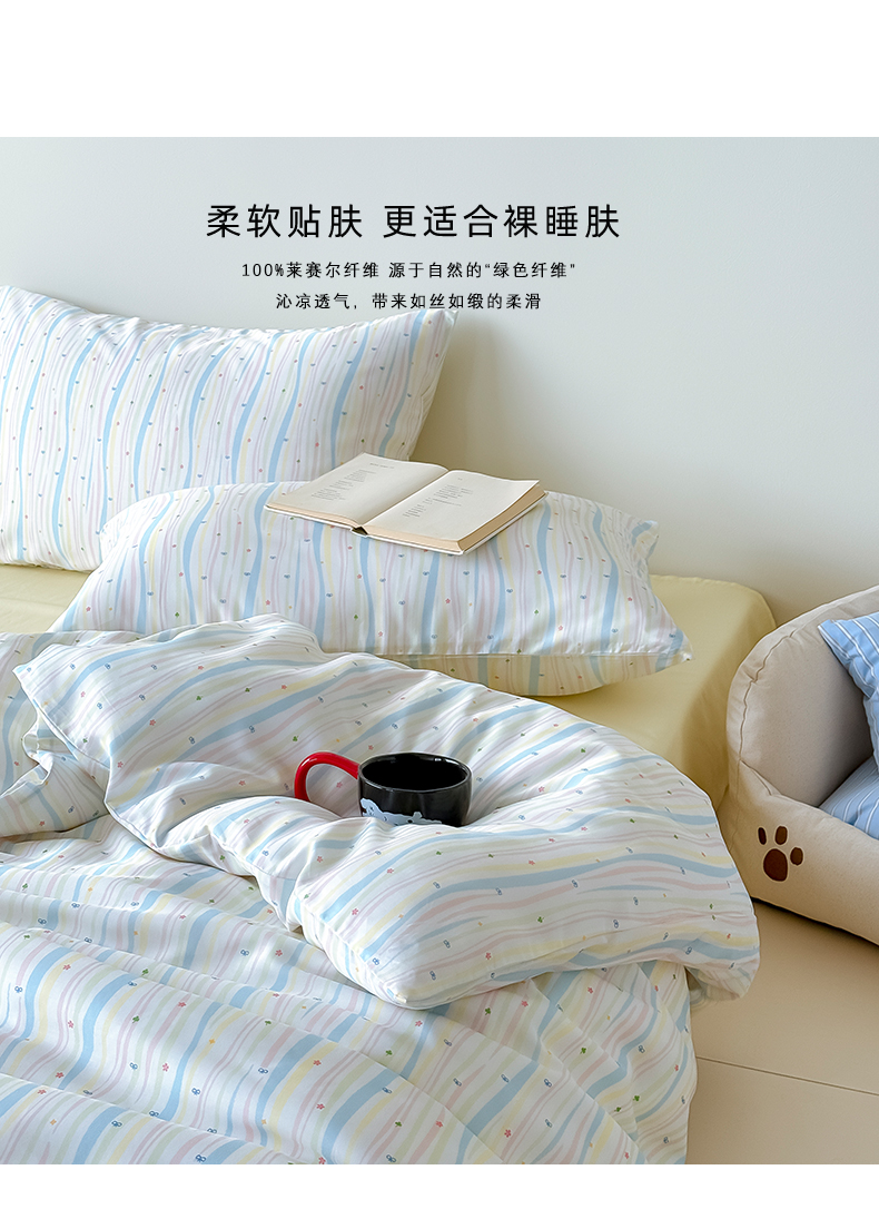 (总)Mr.pig猪先生水洗棉 2026新款莱赛尔纤维印花四件套,彩虹星星,绿藻,线条蓝格子