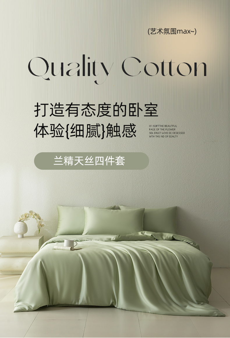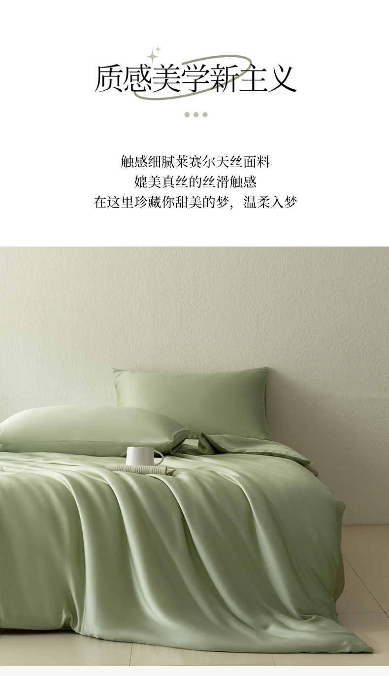 当前位置: 91家纺网 > 商品网购 > 床品套件 > 四件套 > 莱赛尔四件套 > 禾时 2026新款60支奥地利兰精双拼纯色天丝四件套 嫩叶绿
