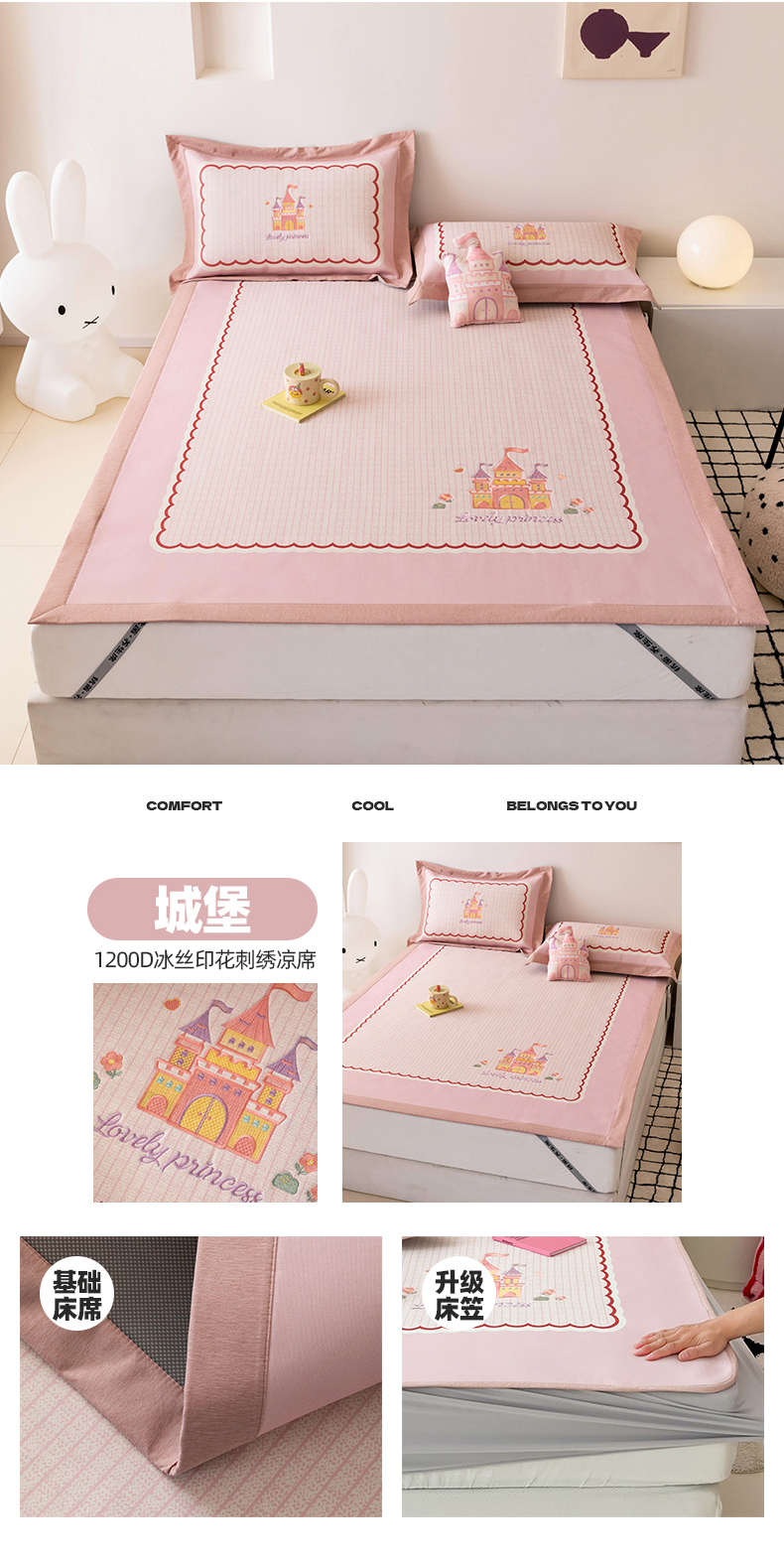 (总)懒猫家纺 2022新款学生宿舍冰丝数码印花凉席,尔雅,粉小兔,花韵,萝卜兔,清晨,手绘爱心,探索星球,甜心,小鲸鱼,小熊仔,元气兔